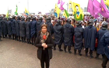 Görevli polisler tarafından bir kabine alındıklarını Söyleyen Hasan, cep telefonu ve bazı malzemelerinin PKK’li göstericiler tarafından alındığını söyledi. Muhabirimiz, gösterinin şiddet eylemine dönüştüğünü belirterek, 3 polisin de yaralandığını aktardı.