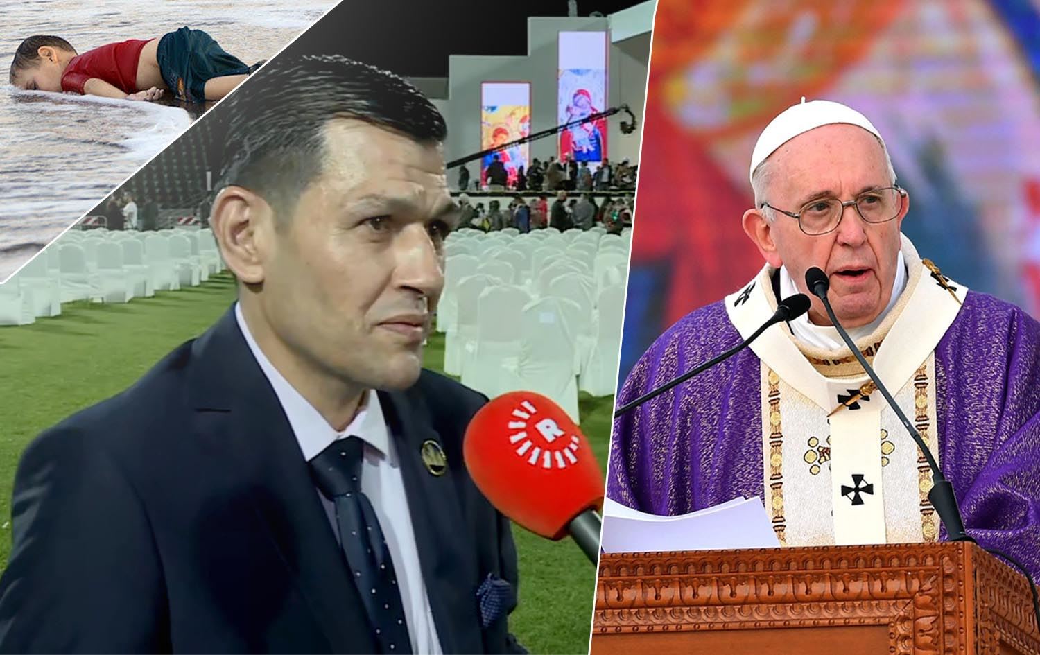 Göçmenlerin yaşadığı dramın sembolü haline gelen Kobanili Alan Kurdi'nin babası Abdullah Kurdi, Kürdistan Bölgesi’ni ziyaret eden Katoliklerin ruhani lideri Papa Franciscu ile Franso Hariri Stadyumu’nda görüştü.