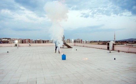 Ses bombası, iftar ve sahurda İtfaiye Daire Başkanlığı çatısında itfaiye görevlilerince ateşleniyor.