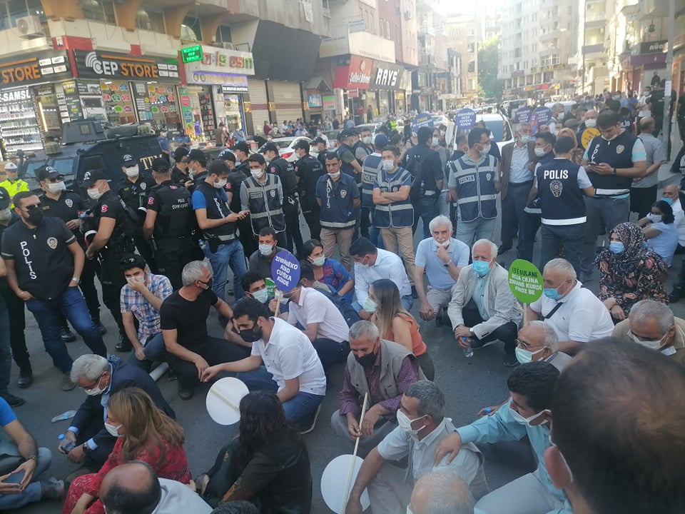 Halkın Sanat Sokağı’ndaki bekleyişi sürerken HDP milletvekilleri, güvenlik görevlileriyle mitinge izin verilmesi için görüşmelerde bulundu. Ancak polis pandemi kısıtlamalarını gerekçe göstererek halkın dağılmasını istedi.