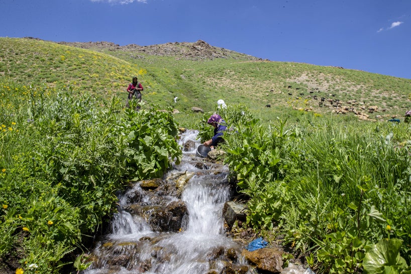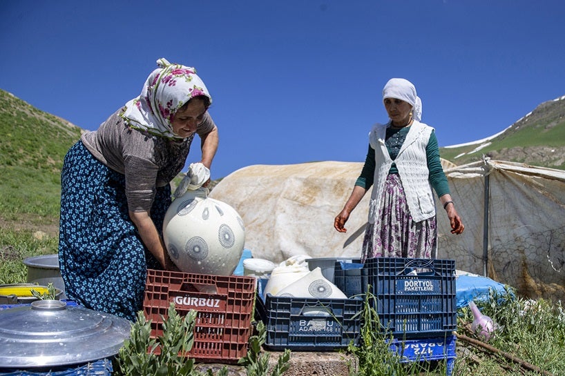 Yayla sakinleri, kurdukları çadırlarda çocuklarıyla günlük yaşamlarını sürdürürken, elde ettikleri süt ve peynirlerle geçimlerini sağlıyor.