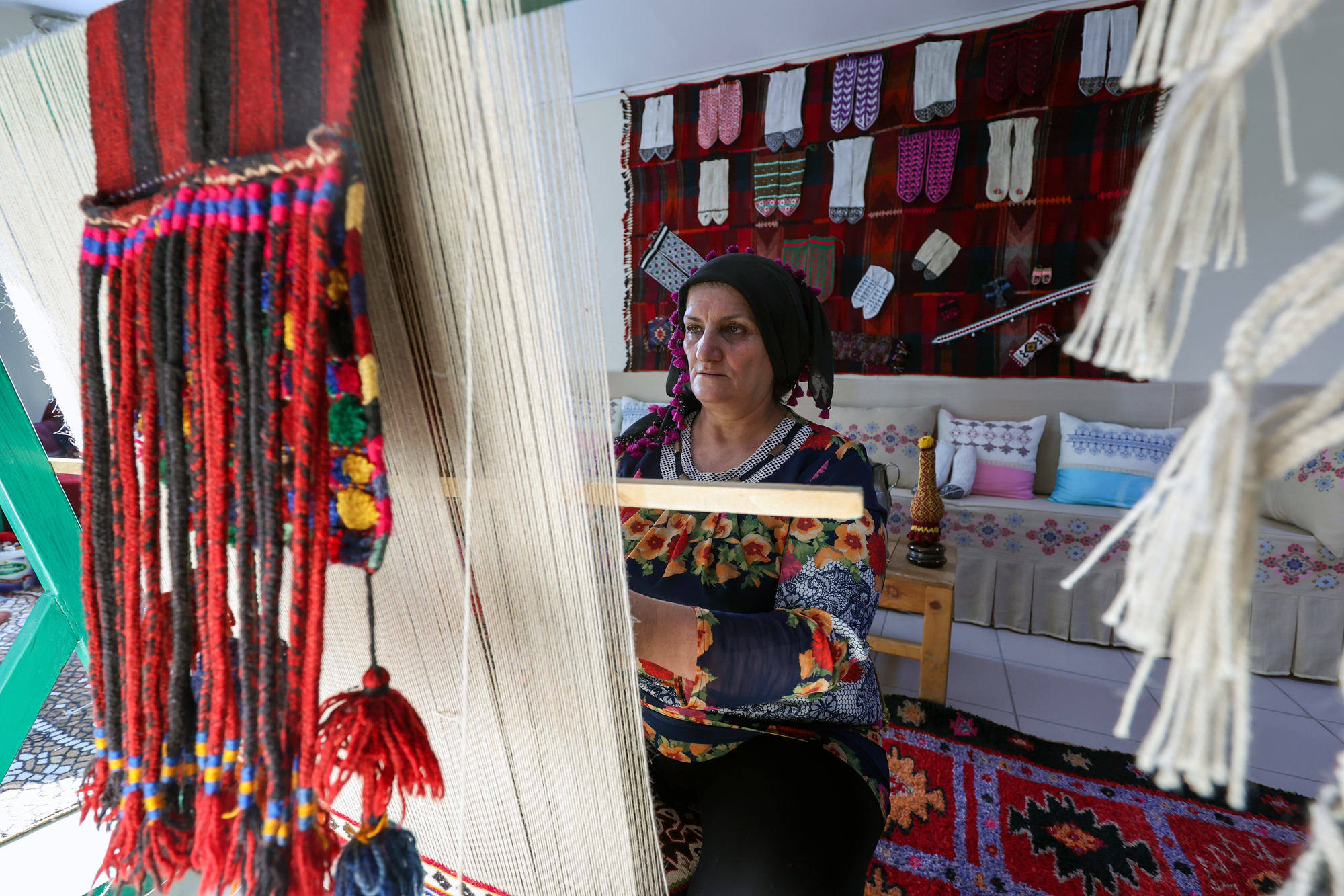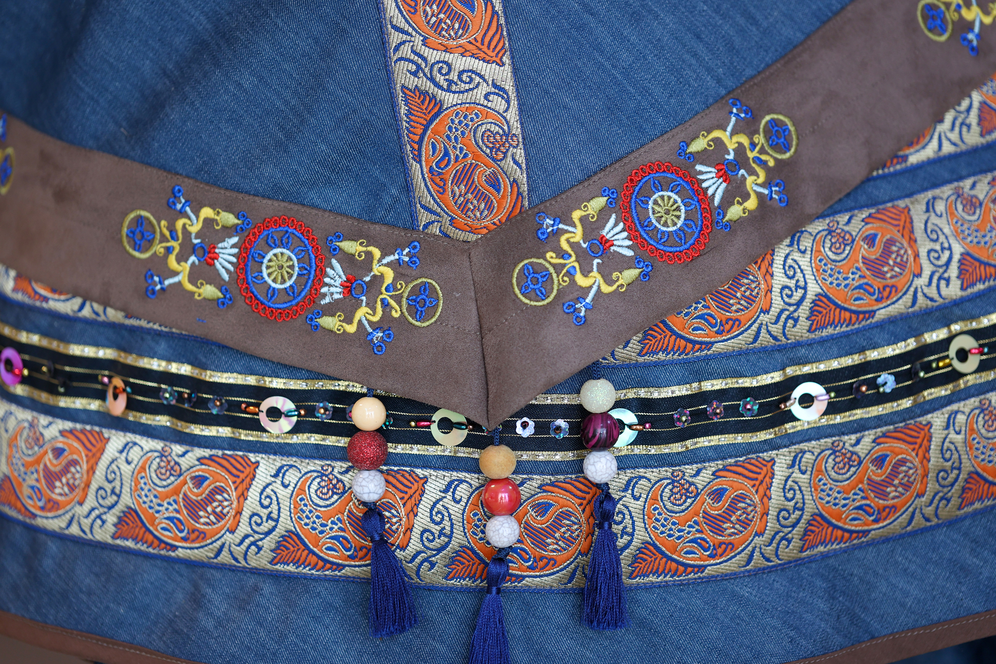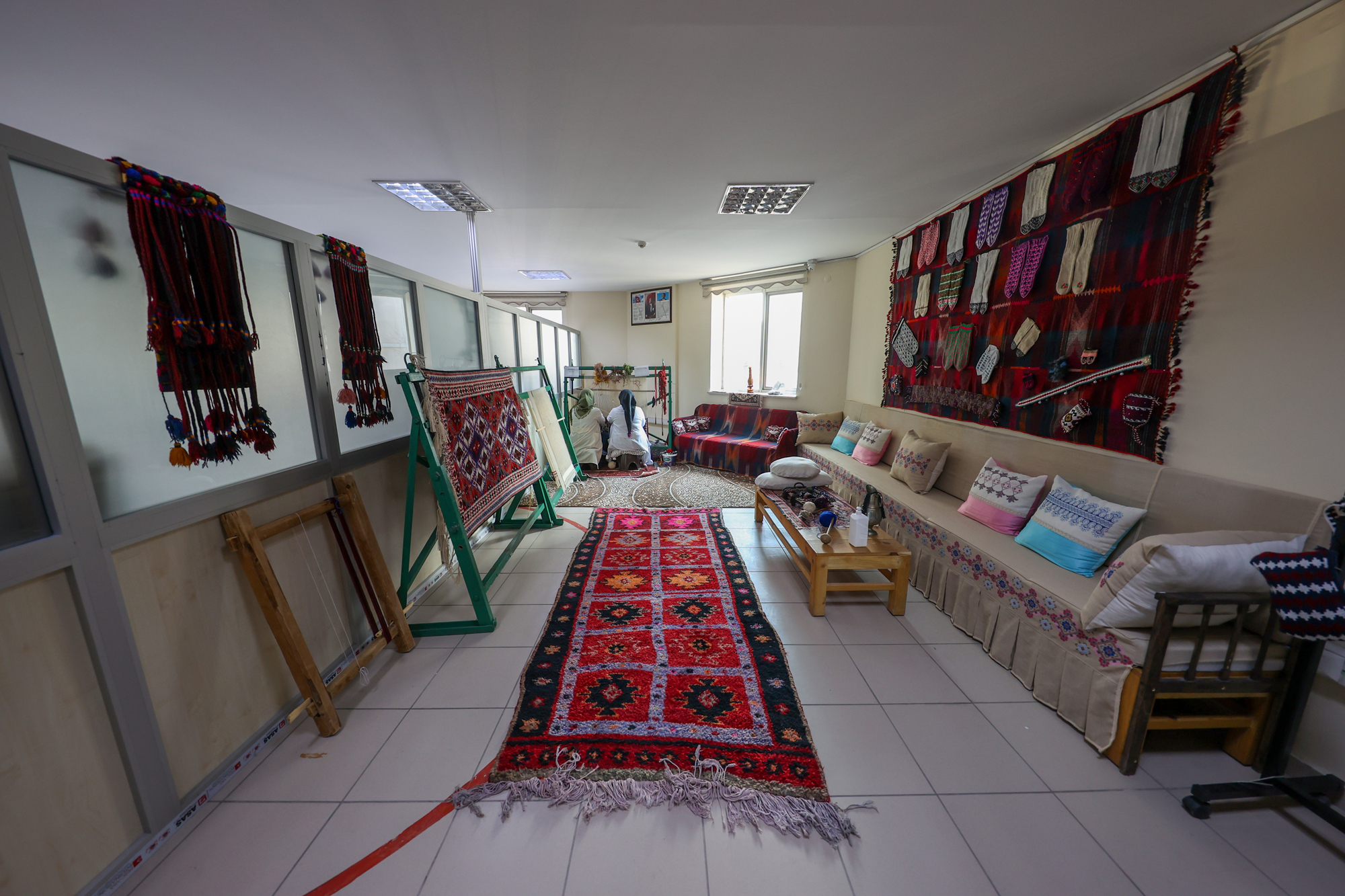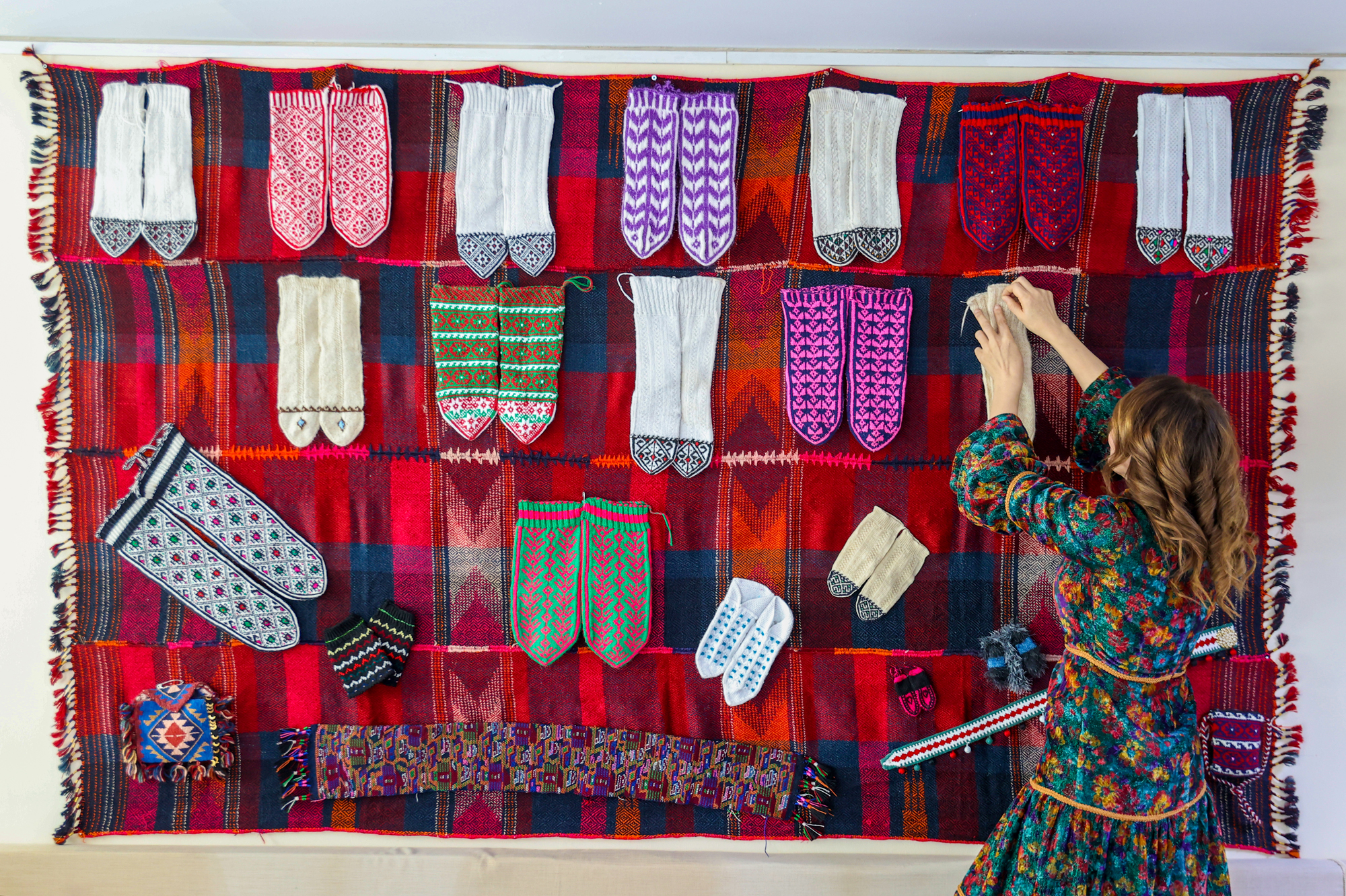 Özel kumaşlardan dikilen kadın kıyafetlerinin üzerine Urartu döneminde kullanılan bronz kemer, kalkan, miğfer, saç tokası, mühür, bilezik, gerdanlık, hayat ağacı, güneş, hayvan ve bitki sembolleri ile kabartma ve mimari eserlerdeki motif örnekleri ustalıkla işlendi.