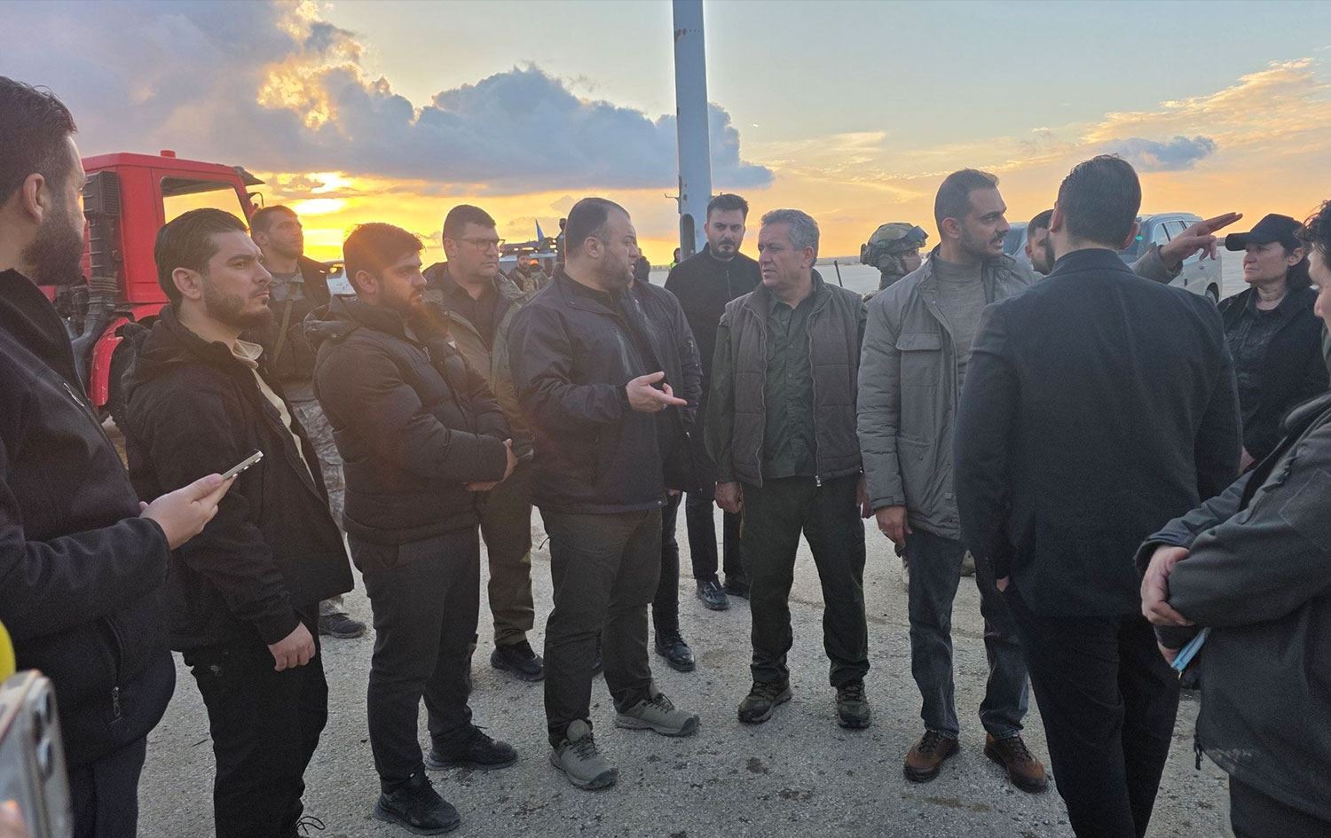 Görüşme sırasında Suriye’ye bağlı güvenlik birimlerine ait araçların da havalimanında bulunduğu görüldü.