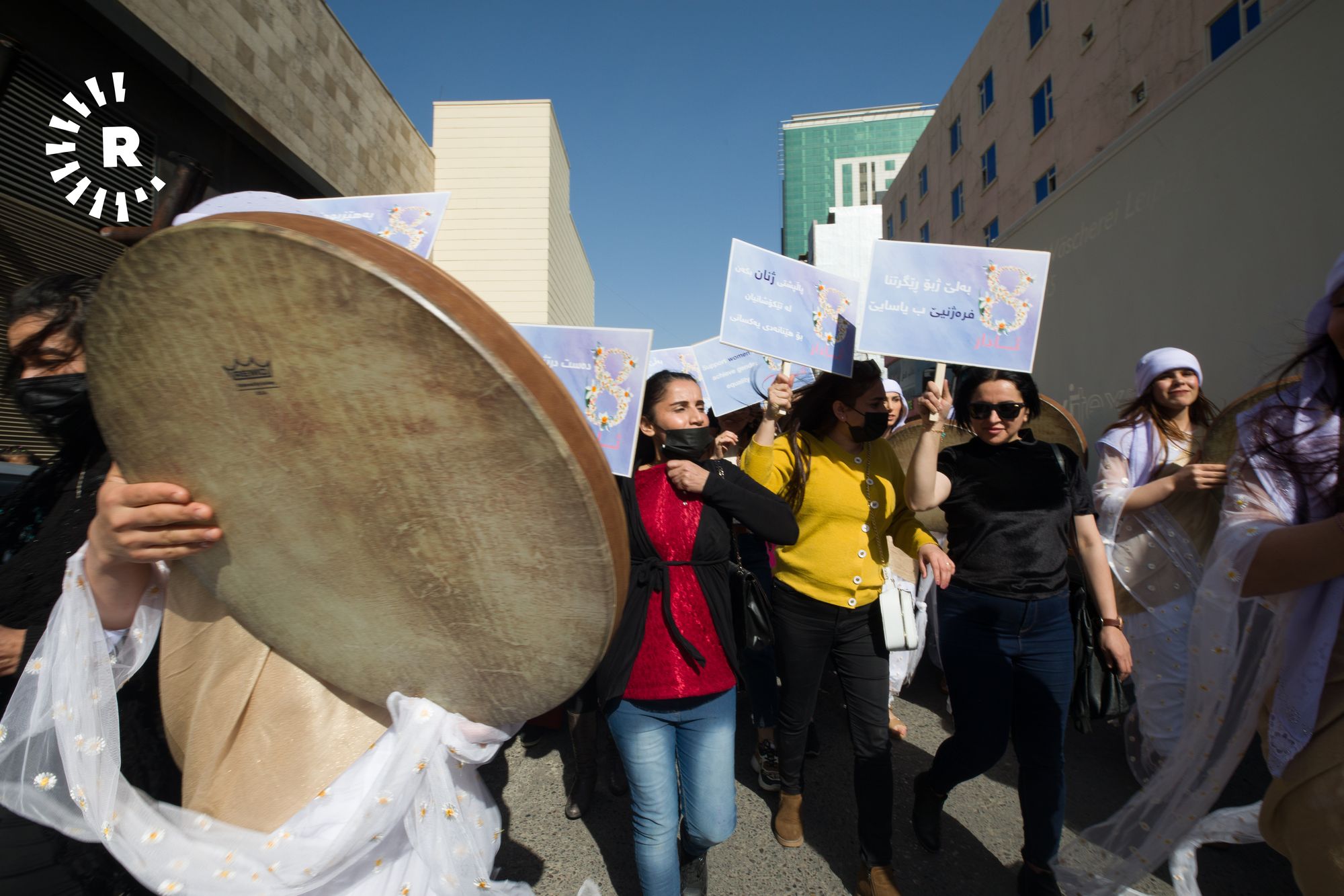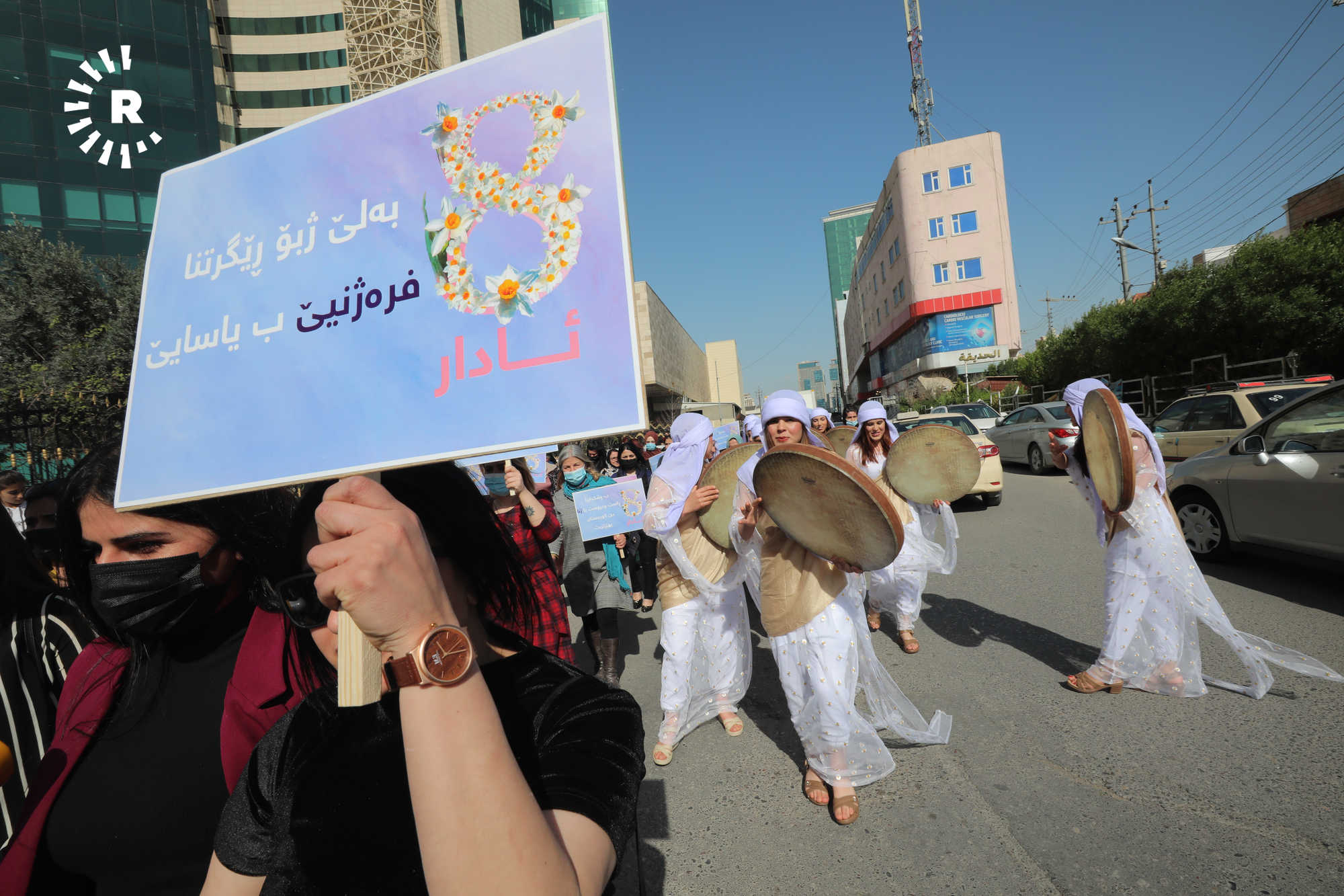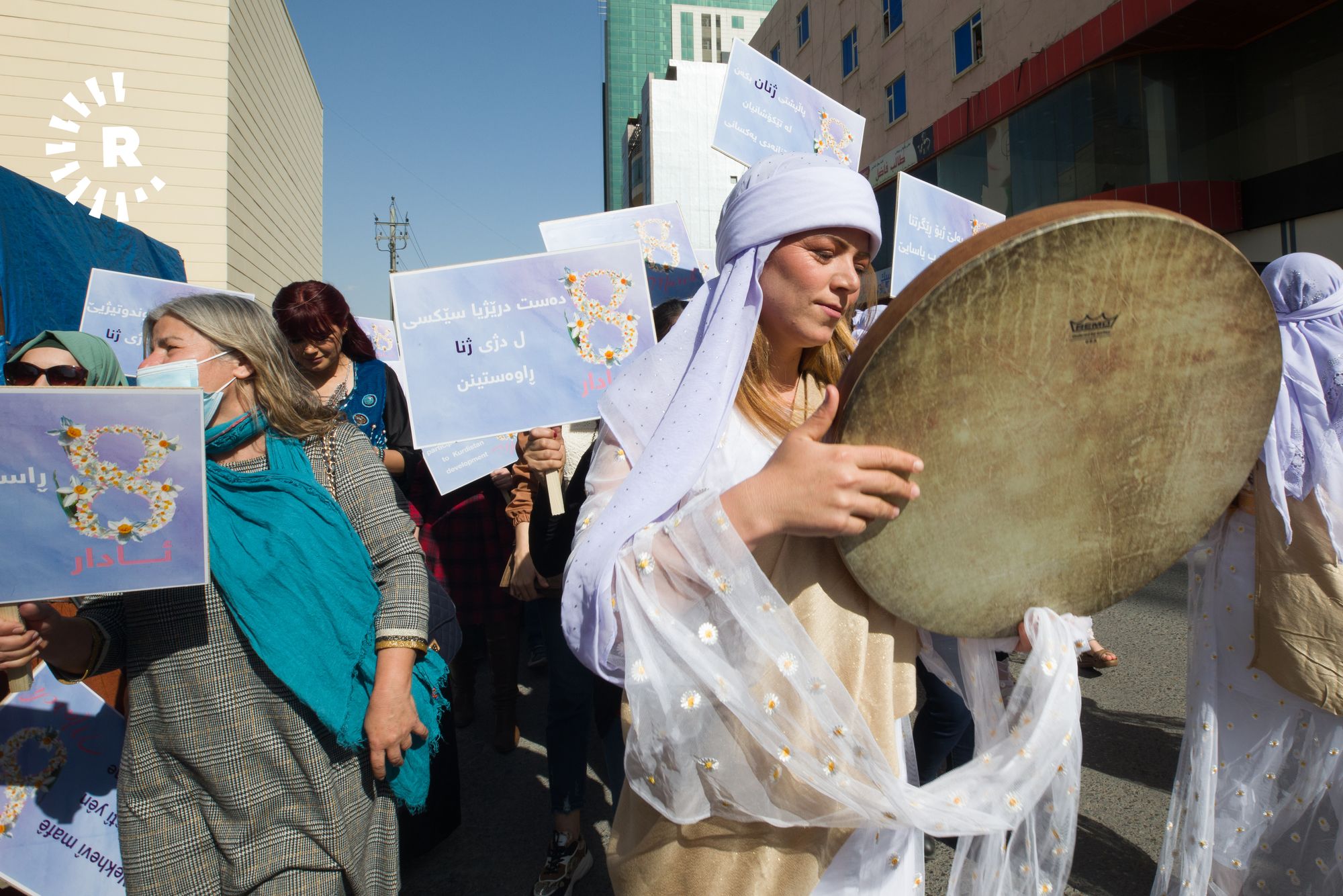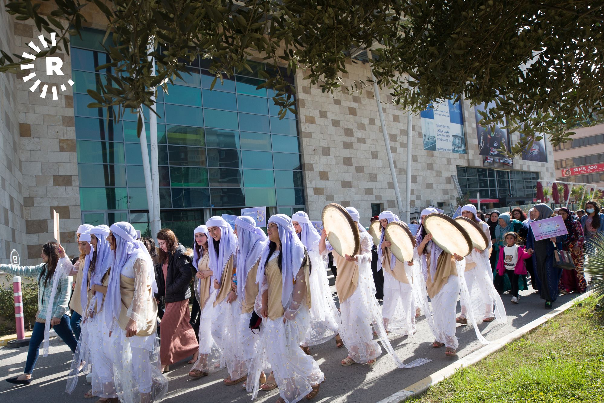 Başkent Erbil’deki Dara Şakran Kampı’nda kalan Rojavalı ve Ezidi kadınlar, Erbil caddelerinde def ve kaval çalarak 8 Mart yürüyüşü gerçekleştirdi.
