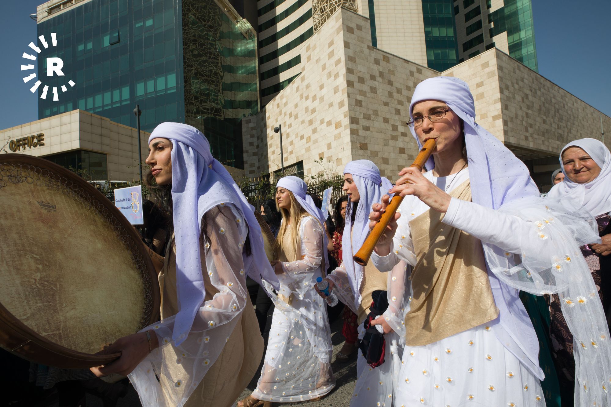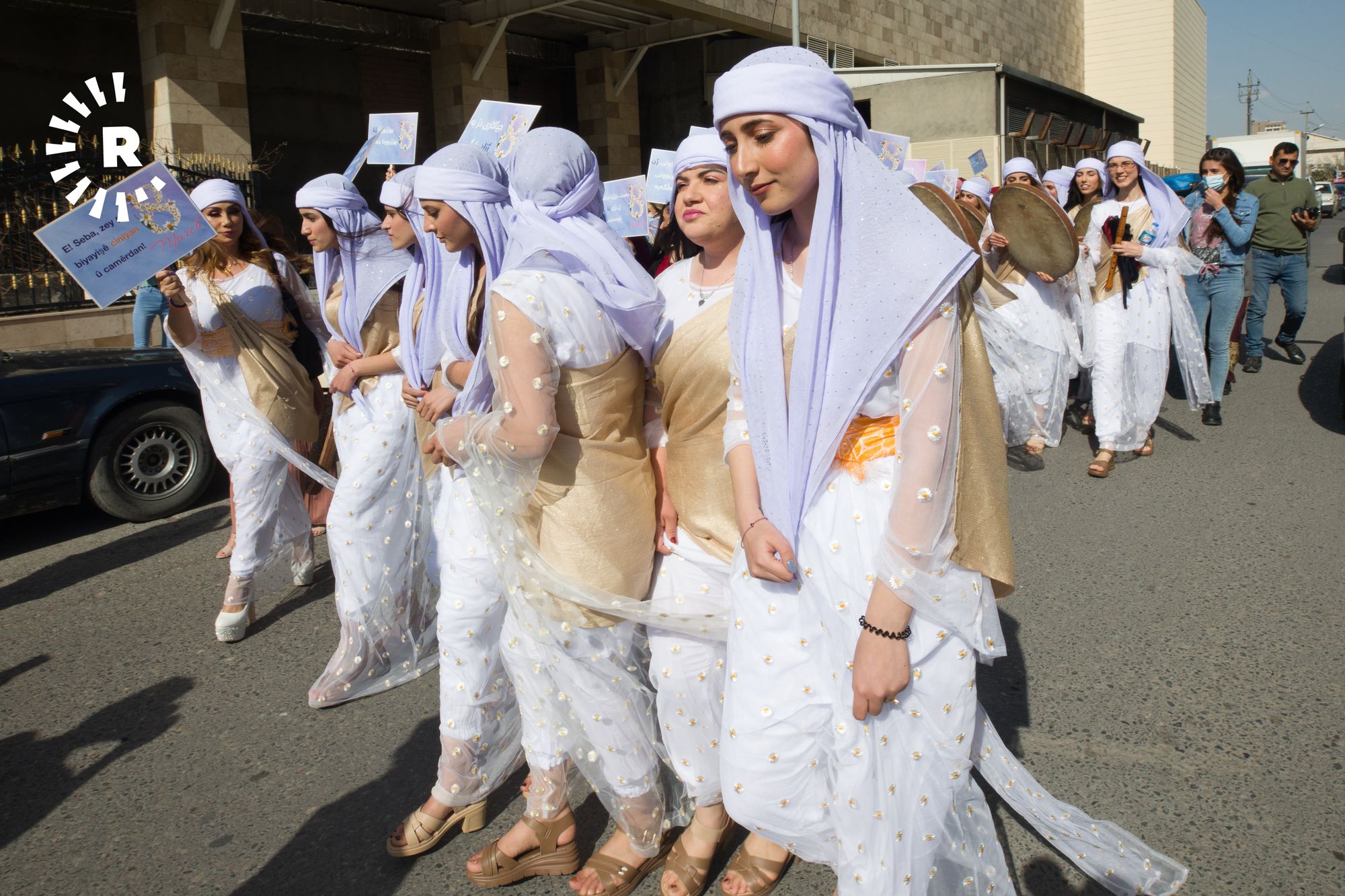 Erbil’de yerel kıyafetler giyen 100’den fazla kadın 8 Mart Dünya Kadınlar Günü etkinliği için bir araya geldi.