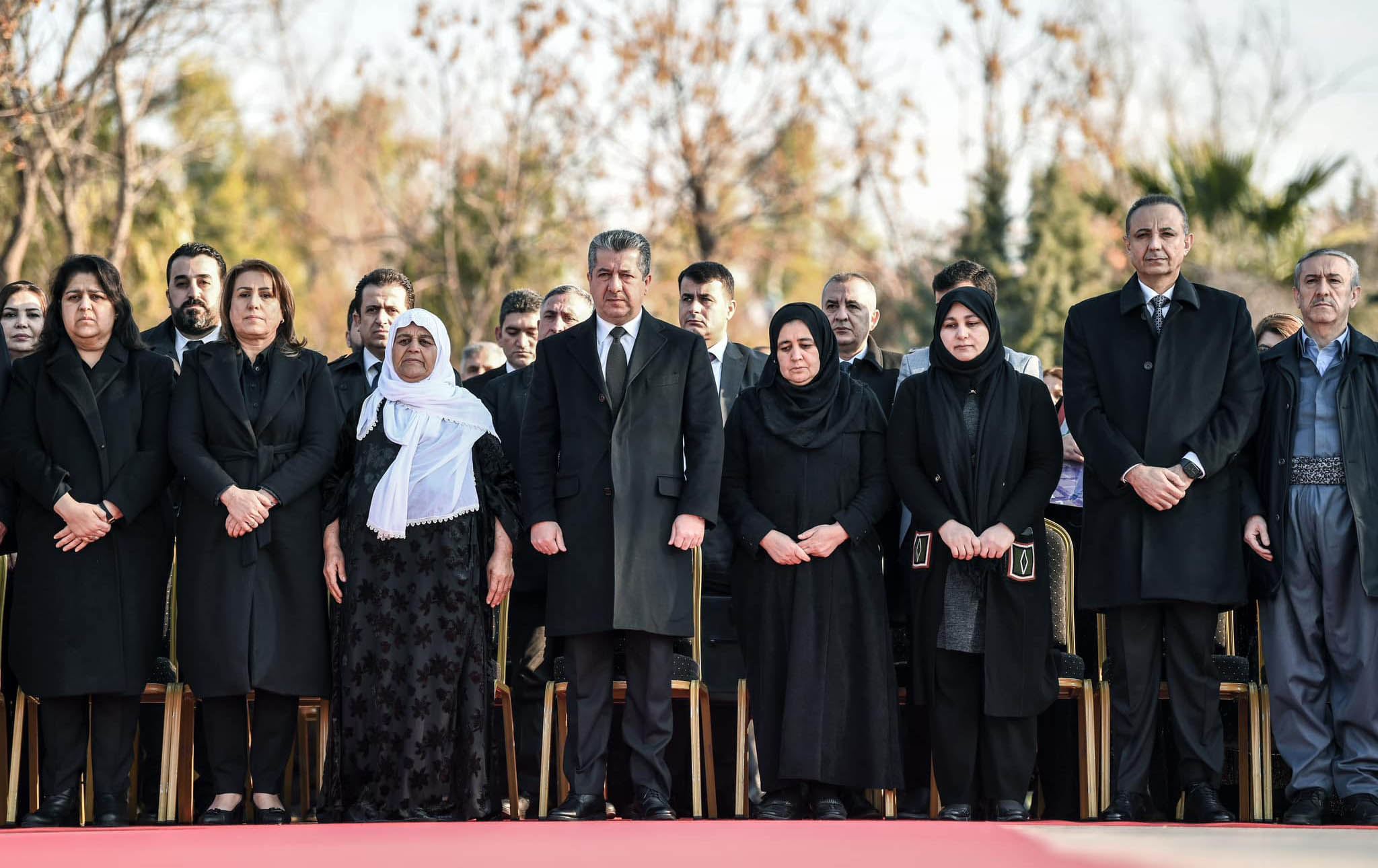 Foto: Başbakan Mesrur Barzani 1 Şubat terör saldırılarının yıl dönümüne katıldığı sırada şehit yakınlarıyla saygı duruşu sırasında çekilen görüntüsü