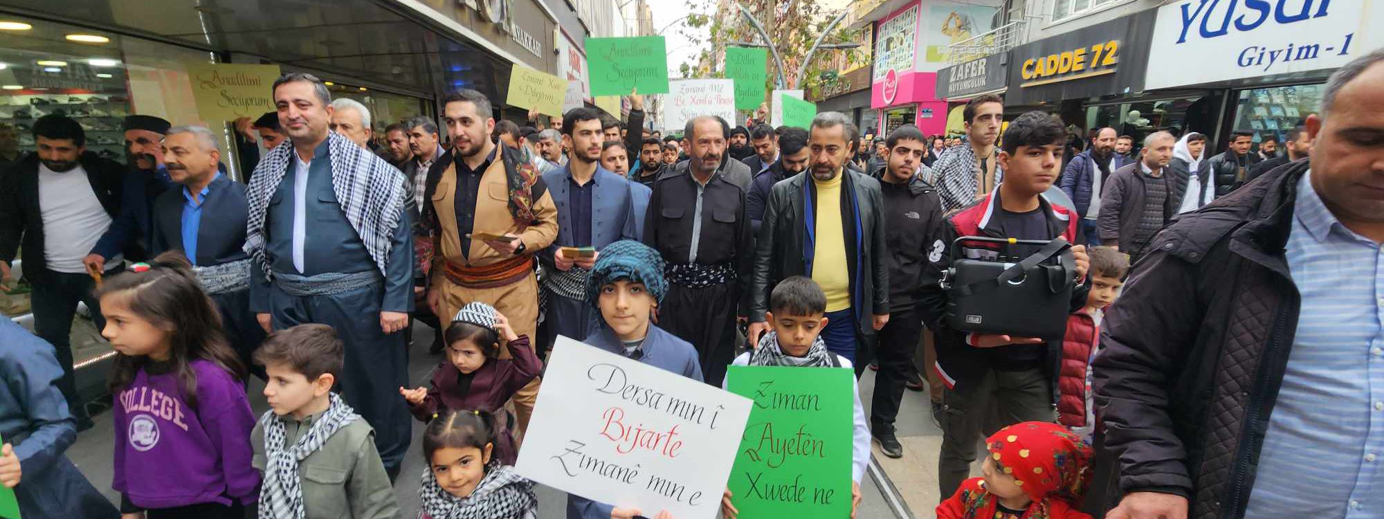 Şemsettin Güneş Camii'nde kılınan Cuma namazının ardından başlayan yürüyüş Gülistan Caddesi'ne kadar devam etti. Kürtçe seçmeli derslerin tercih edilmesi için için kurulan standlarda da broşür dağıtıldı.