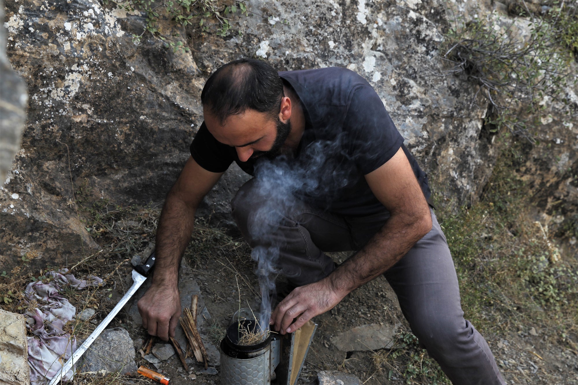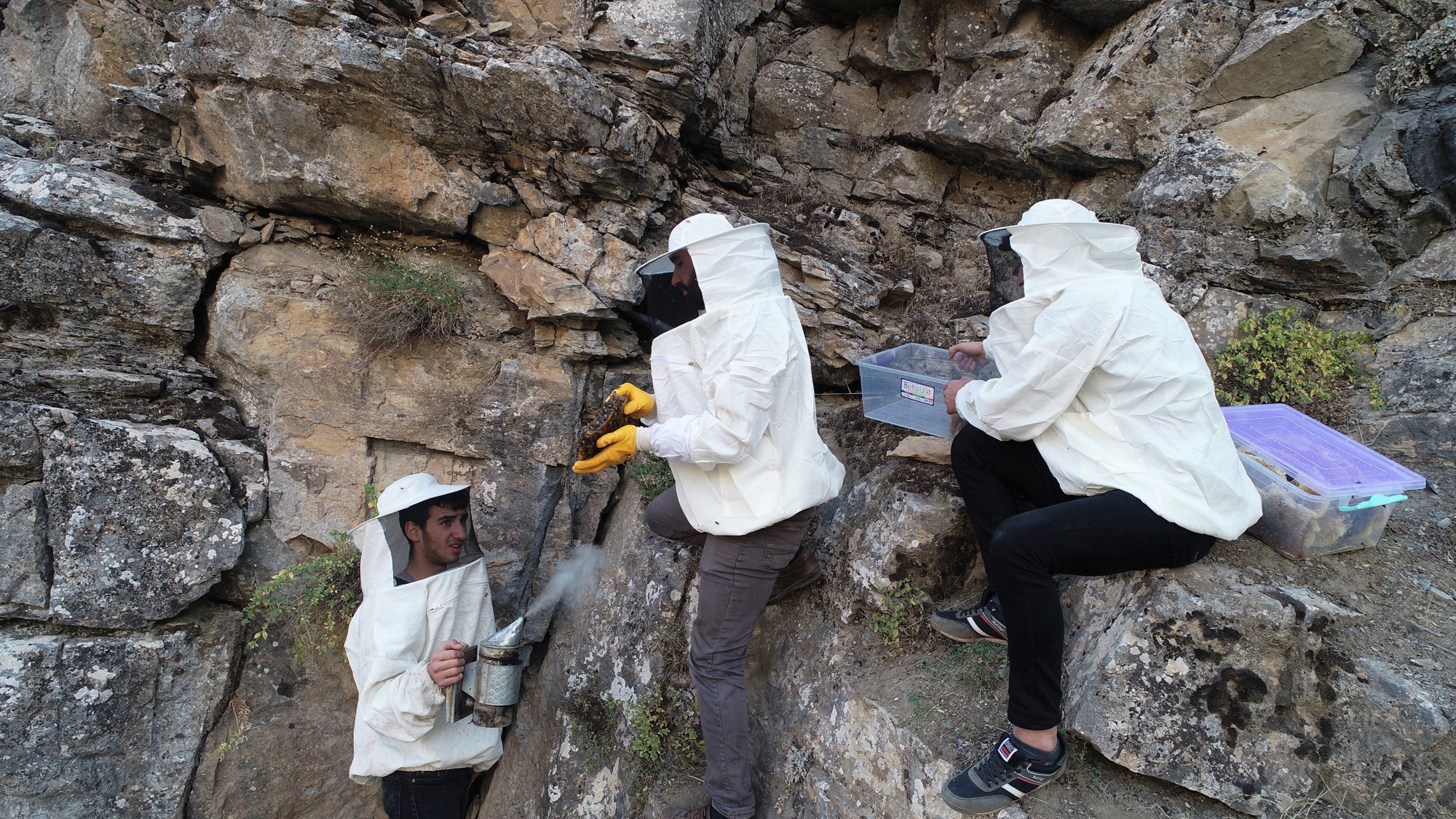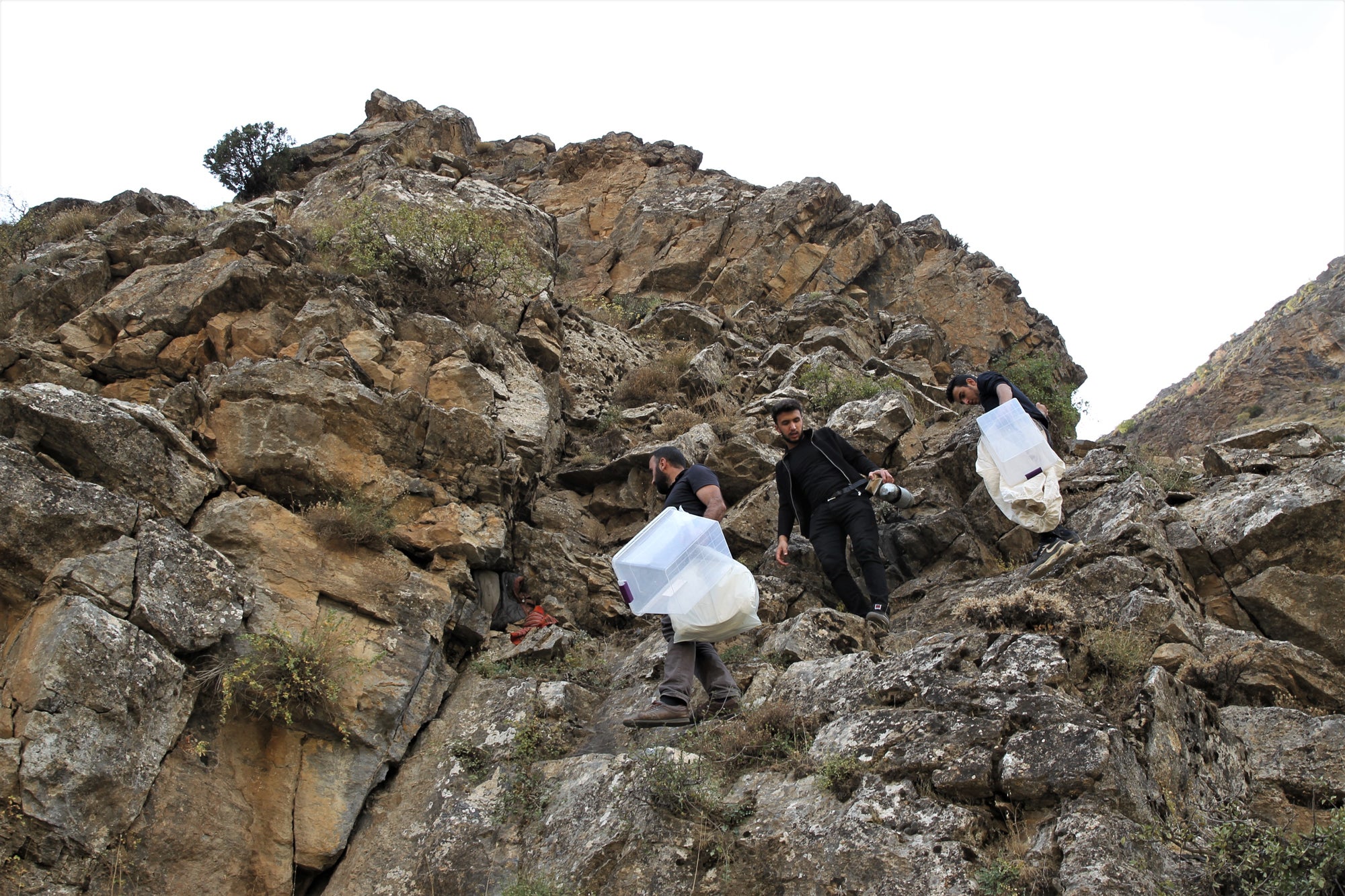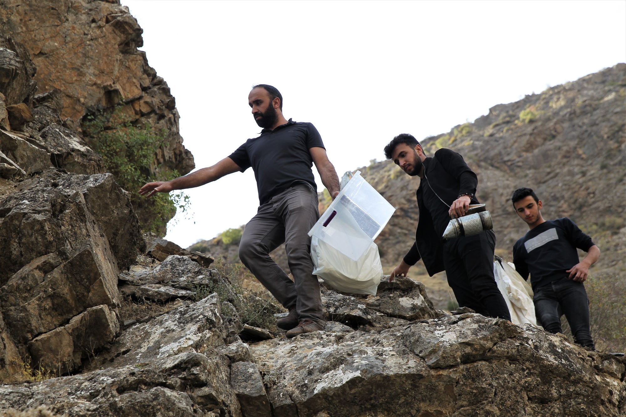 İlçede geçimini arıcılıkla sağlayan Aslan Semo, çocukları Hasan ve Hadi Semo, kaya balı için dağları adım adım geziyor.
