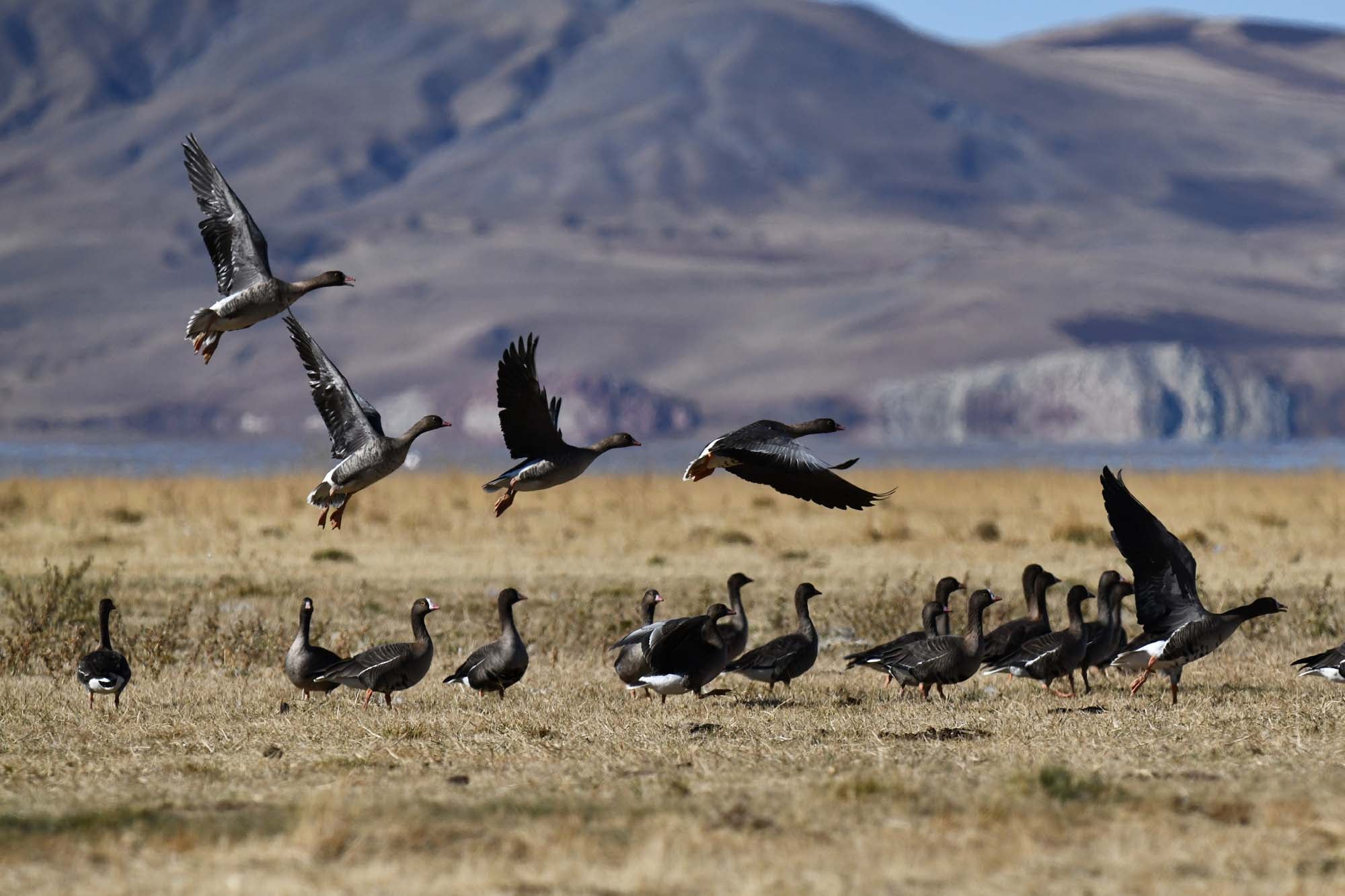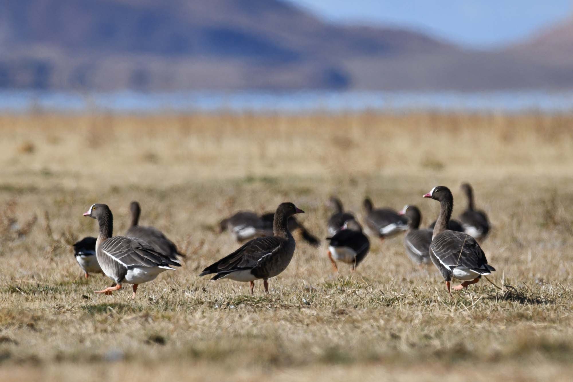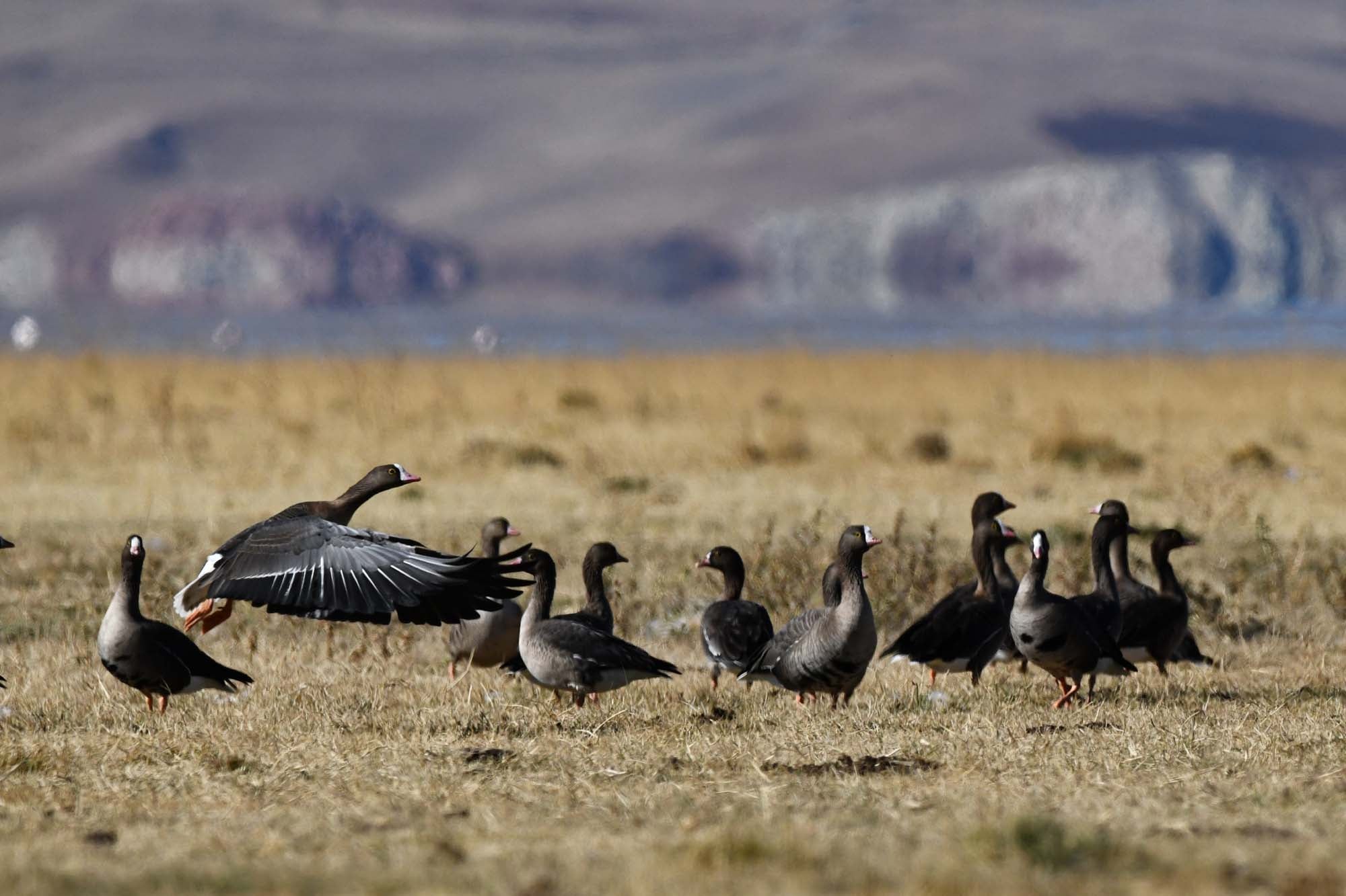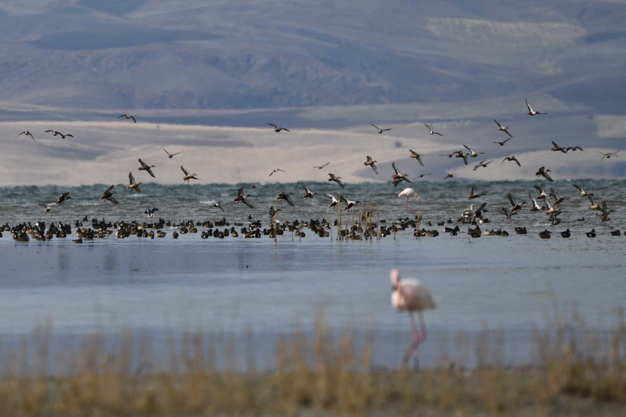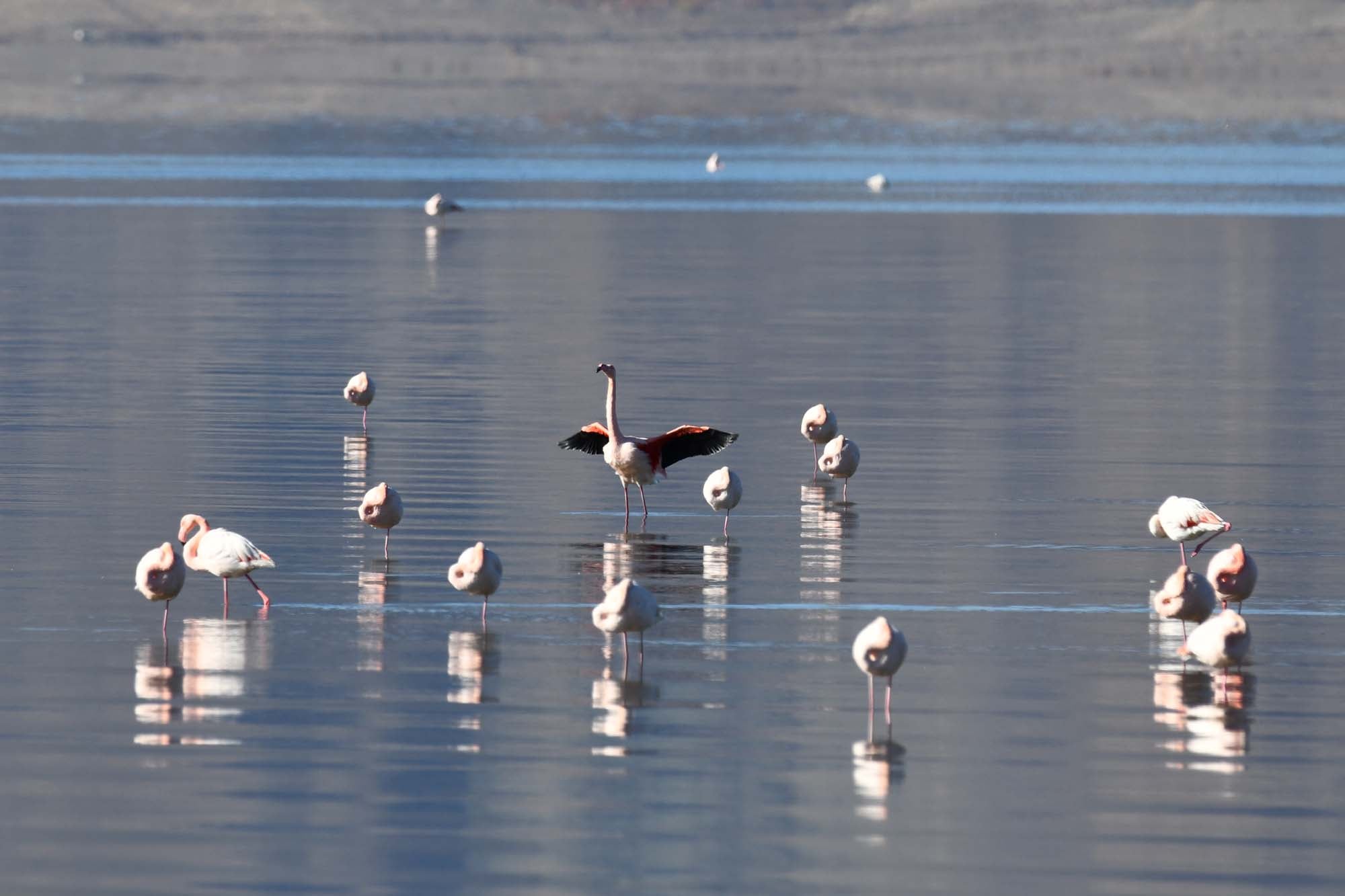 Kuş cenneti olarak anılan Van'ın İpekyolu ilçe sınırında bulunan Erçek Gölü, bu yıl flamingoların yanı sıra yaban kazlarını da barındırıyor.