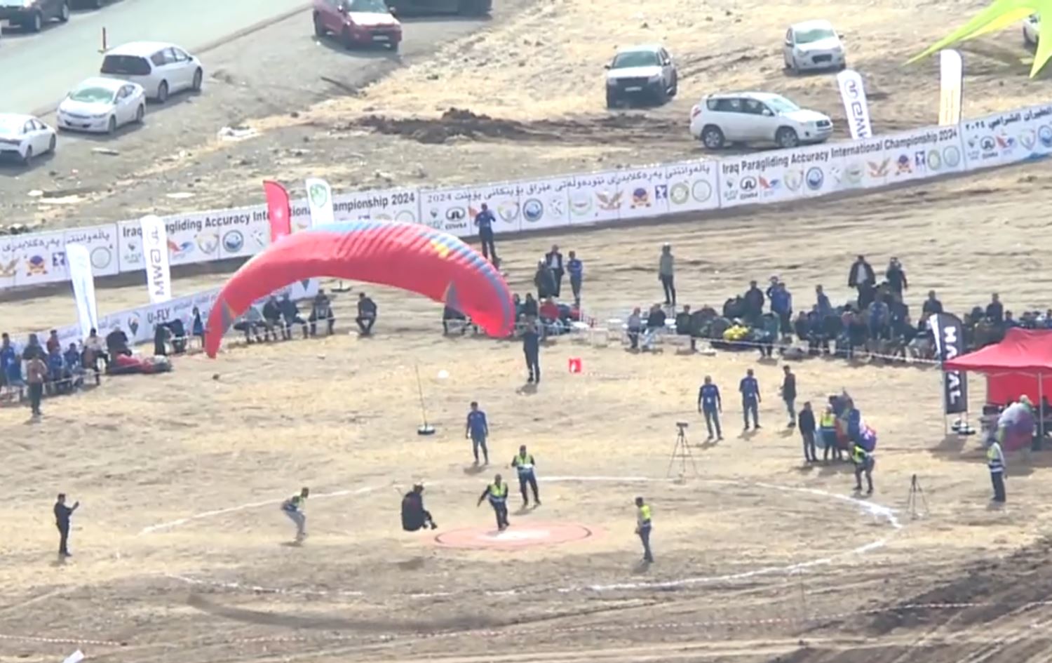 Süleymaniye (Rûdaw) - Süleymaniye'de düzenlenen Point Yamaç Paraşütü Şampiyonası'na 13 farklı ülkeden çok sayıda sporcu katıldı. Sporcular Erbet’teki tepelerden kendilerine belirlenen menzile kadar uçtu.