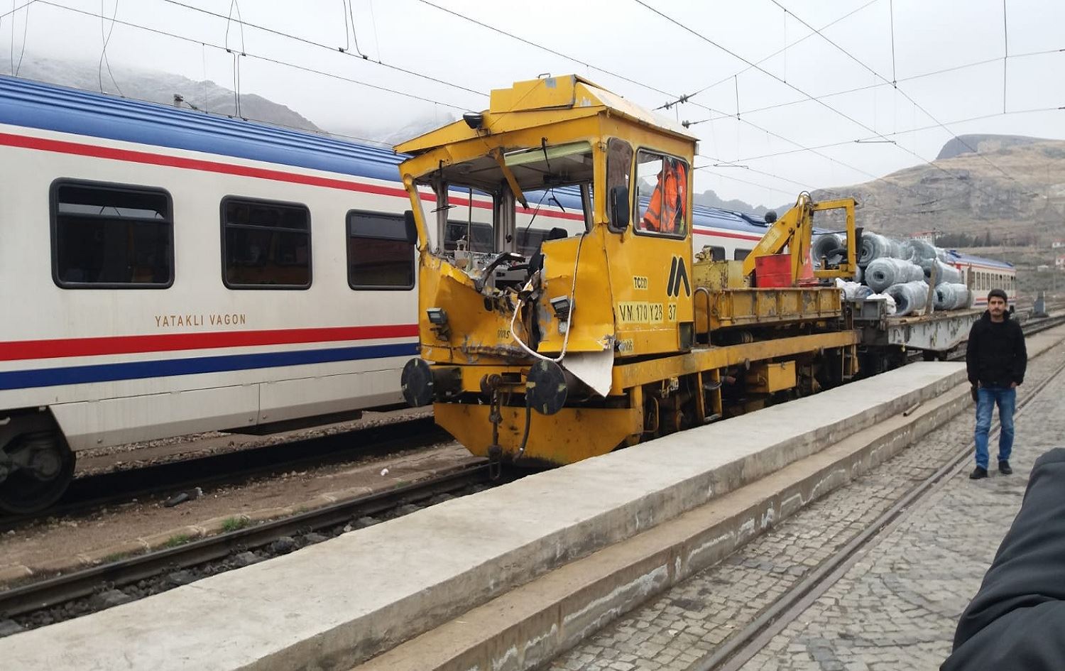 Divriği’de, demir yolunda personel taşımada kullanılan ve raylarda hareket eden mobil araç, Çaltı köyü yakınlarında tünel içerisinde bakım ve onarım yapan hurda ray toplayan iş makinesinin kepçesine çarptı.