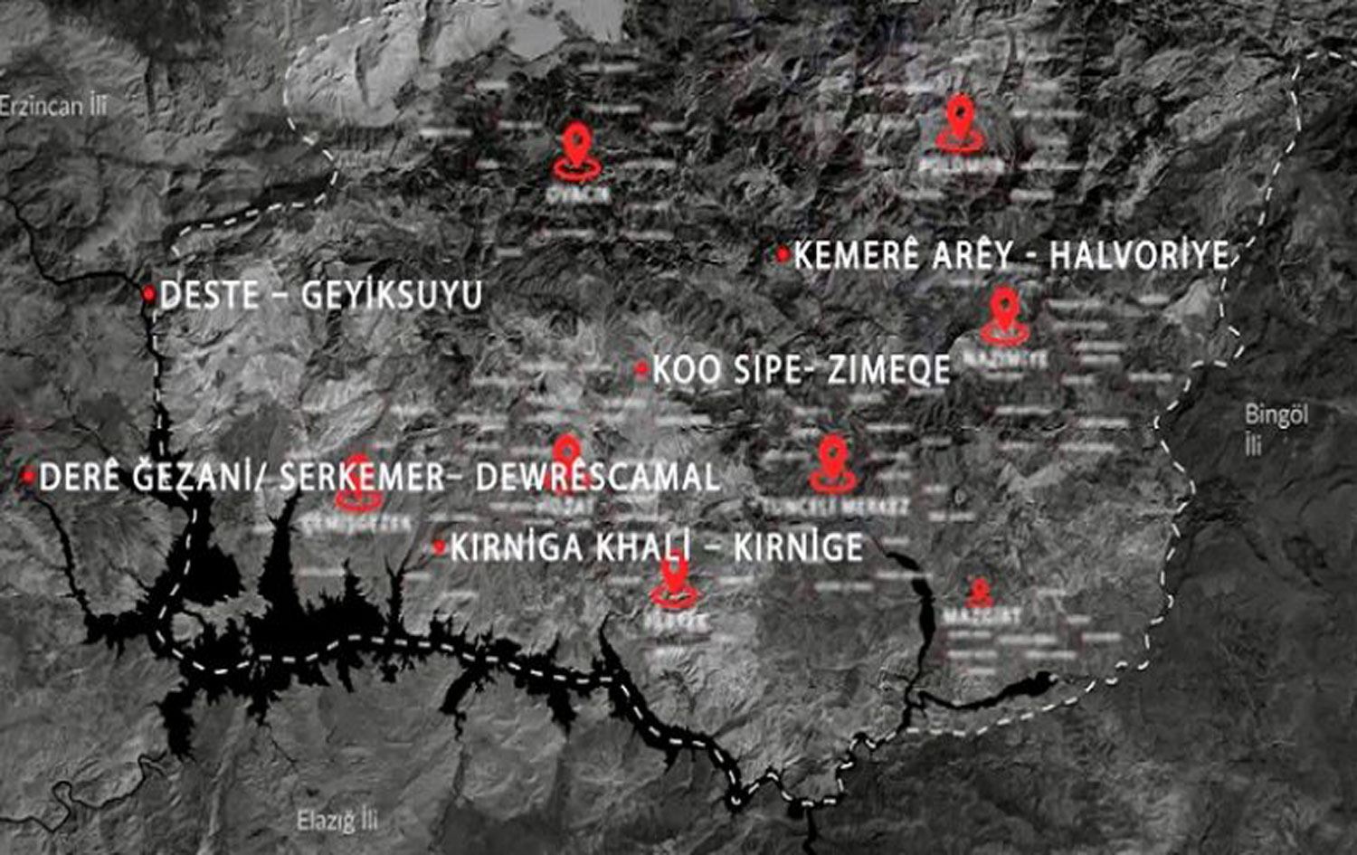 Friedrich Ebert Stiftung Derneği Türkiye Temsilciliği tarafından desteklenen “Dersim 1937-1938 Saha Çalışması Pilot Projesi” (Haziran-Eylül 2020) kapsamında hazırlanan çalışma Kemerê Arey (Halvoriye/Karşılar Köyü), Koo Spi/Beyaz Dağ (Zımeq/Çığırlı Köyü), Kırniga Khali (Kırnige/Buzlupınar Köyü), Serkemer/Derê Xezani (Dervişcemal Köyü) ve Deşt/Geyiksuyu katliam yerlerini kapsıyor.