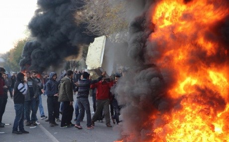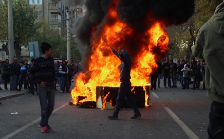 Kitle, daha sonra ateş yakarak, sloganlar attı.