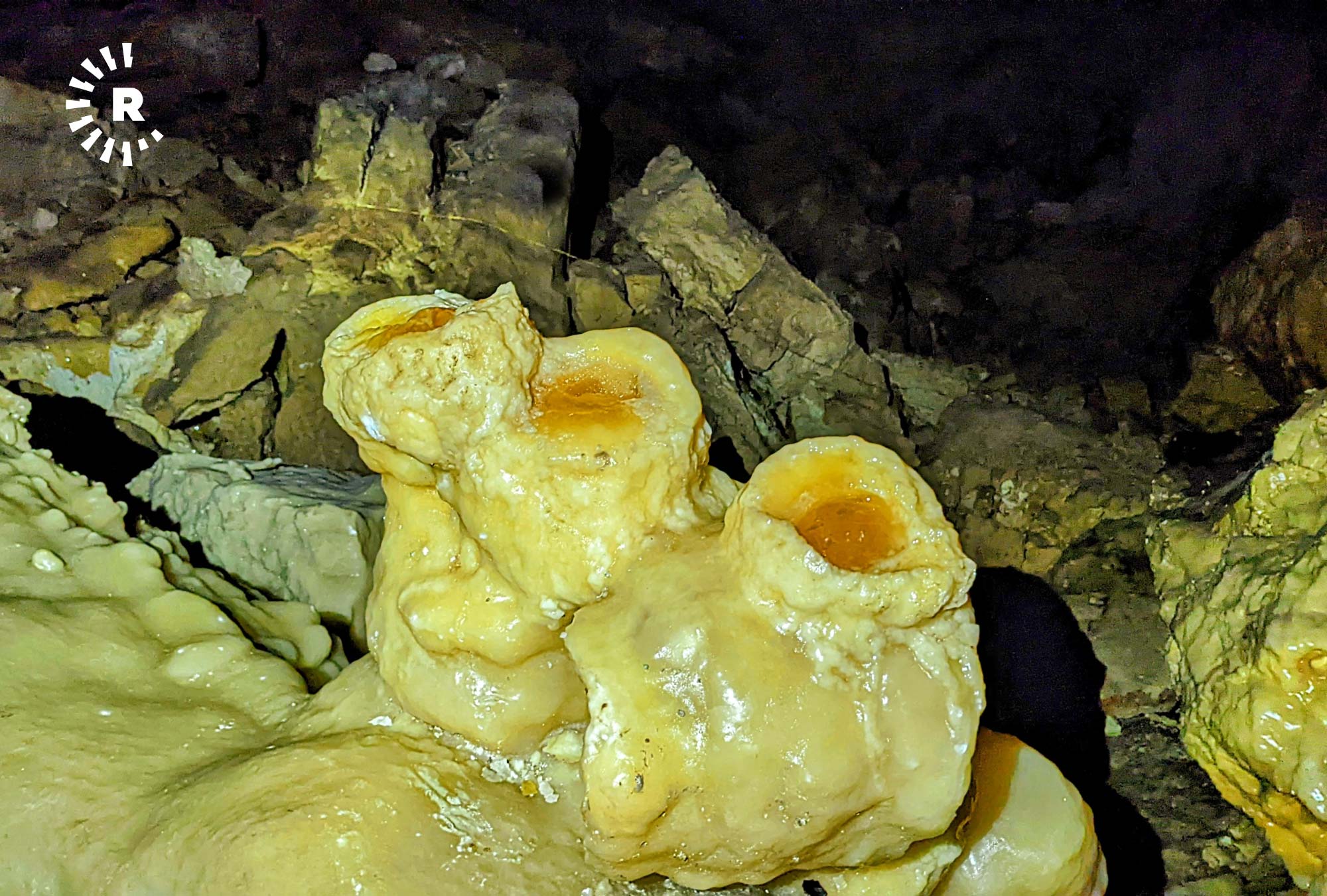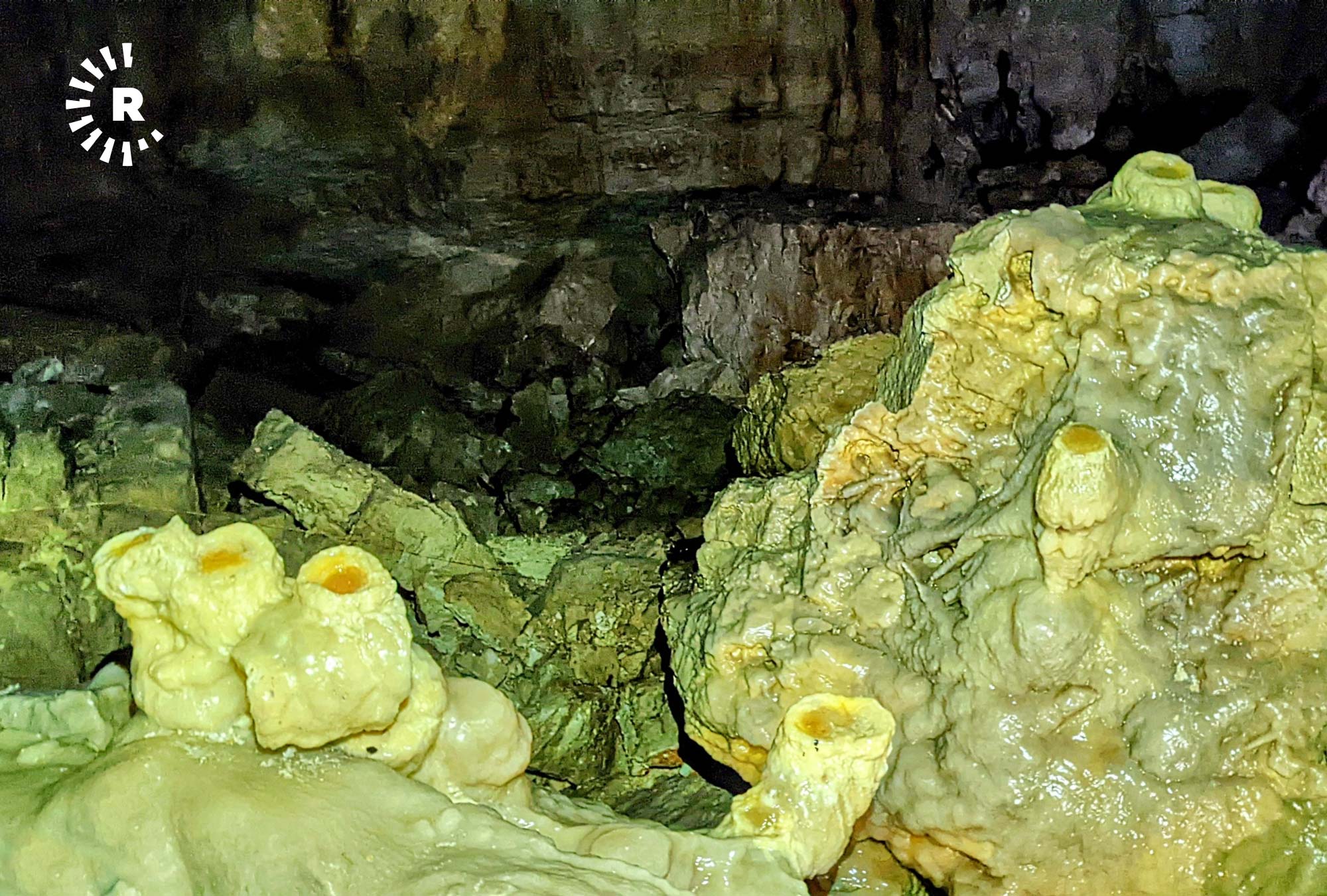 Kuneba Mağarası’nı özel kılan şey ise yüzyıllar boyunca hatta belki de milyonlarca yılda, magnezyum-kalsiyum karışımı suların, "damlaya, damlaya" akması ile oluşturduğu sarkıt ve dikitler.