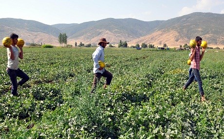 İl dışından Muş'a gelen çiftçiler, ilkbahar mevsiminde gecikmeli olarak ektikleri kavun ve karpuzun hasadına başladı.