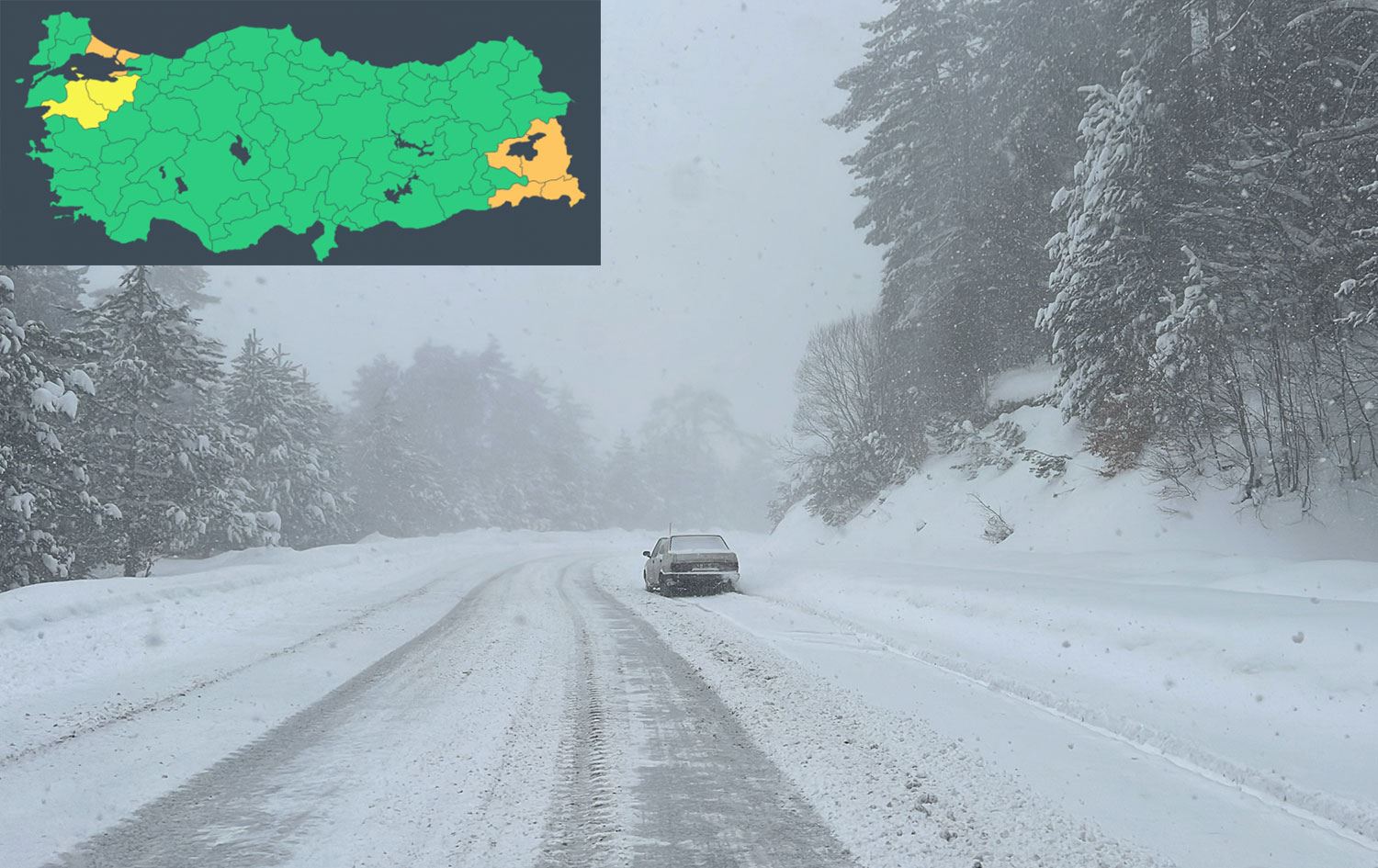 Yoğun kar yağışı beklenen Balıkesir ve Bursa için 'sarı', İstanbul ve Yalova için 'turuncu', ayrıca, çığ riski bulunan Şırnak, Bitlis, Hakkari ve Van için de 'turuncu' uyarı yapıldı.