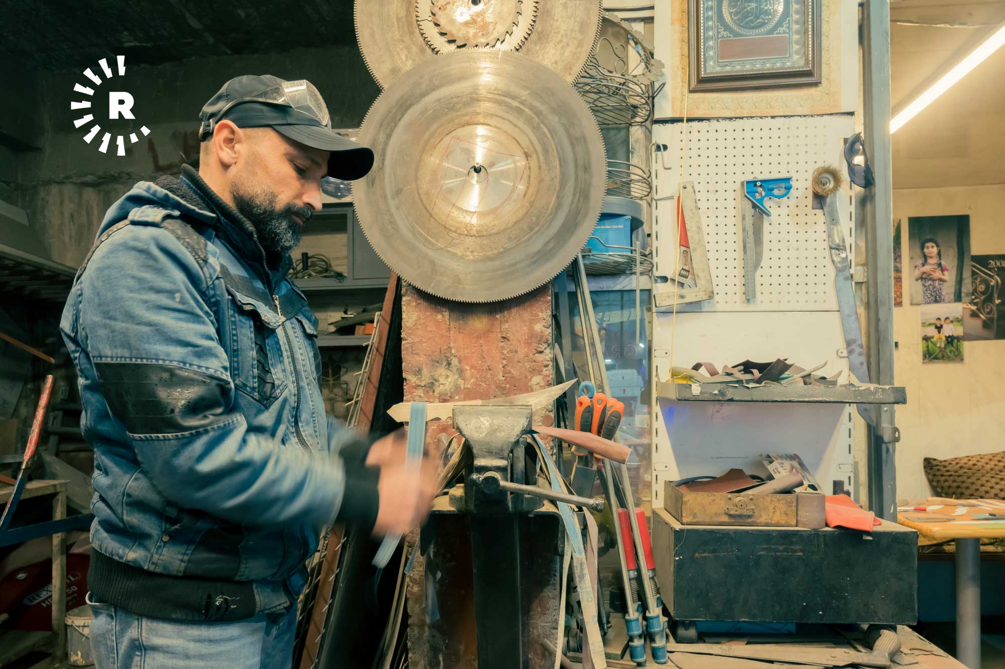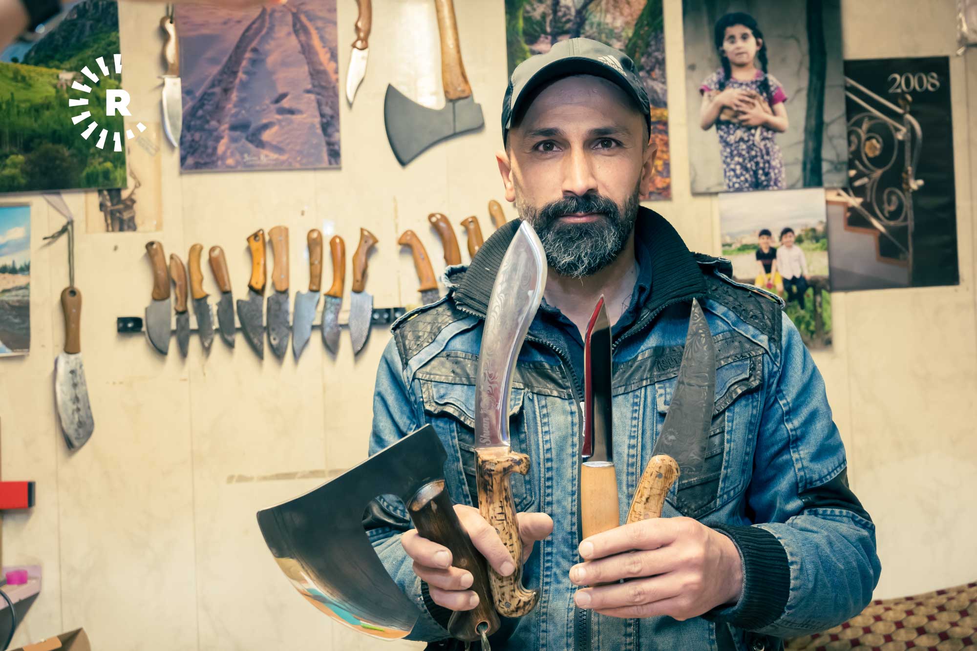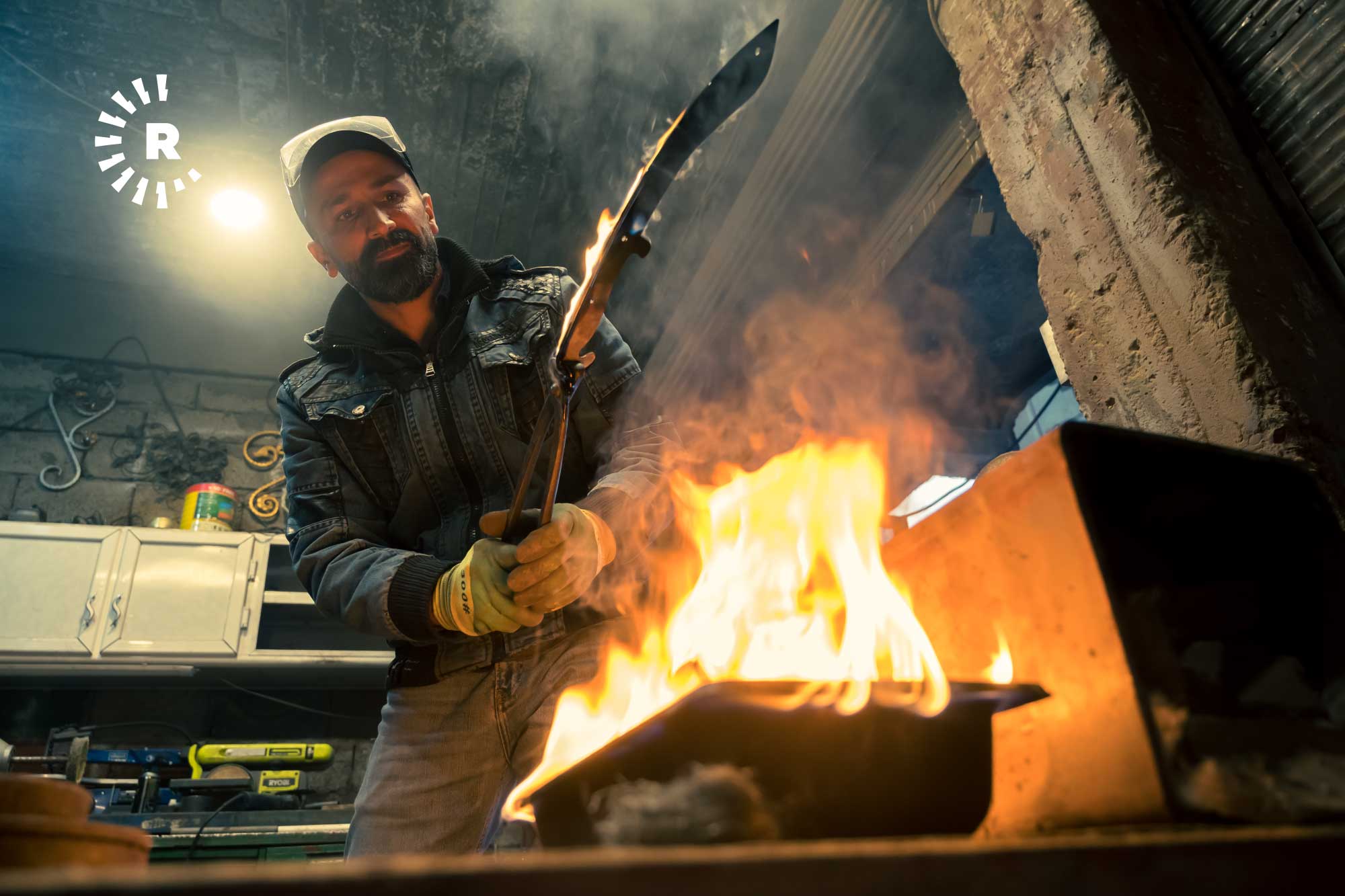 38 yaşındaki Şivan Haddad, 22 yıldır demir atölyesinde çalışıyor. Üç yıl önce ise, eski demirlerden bıçaklar üretmeye başlamış.