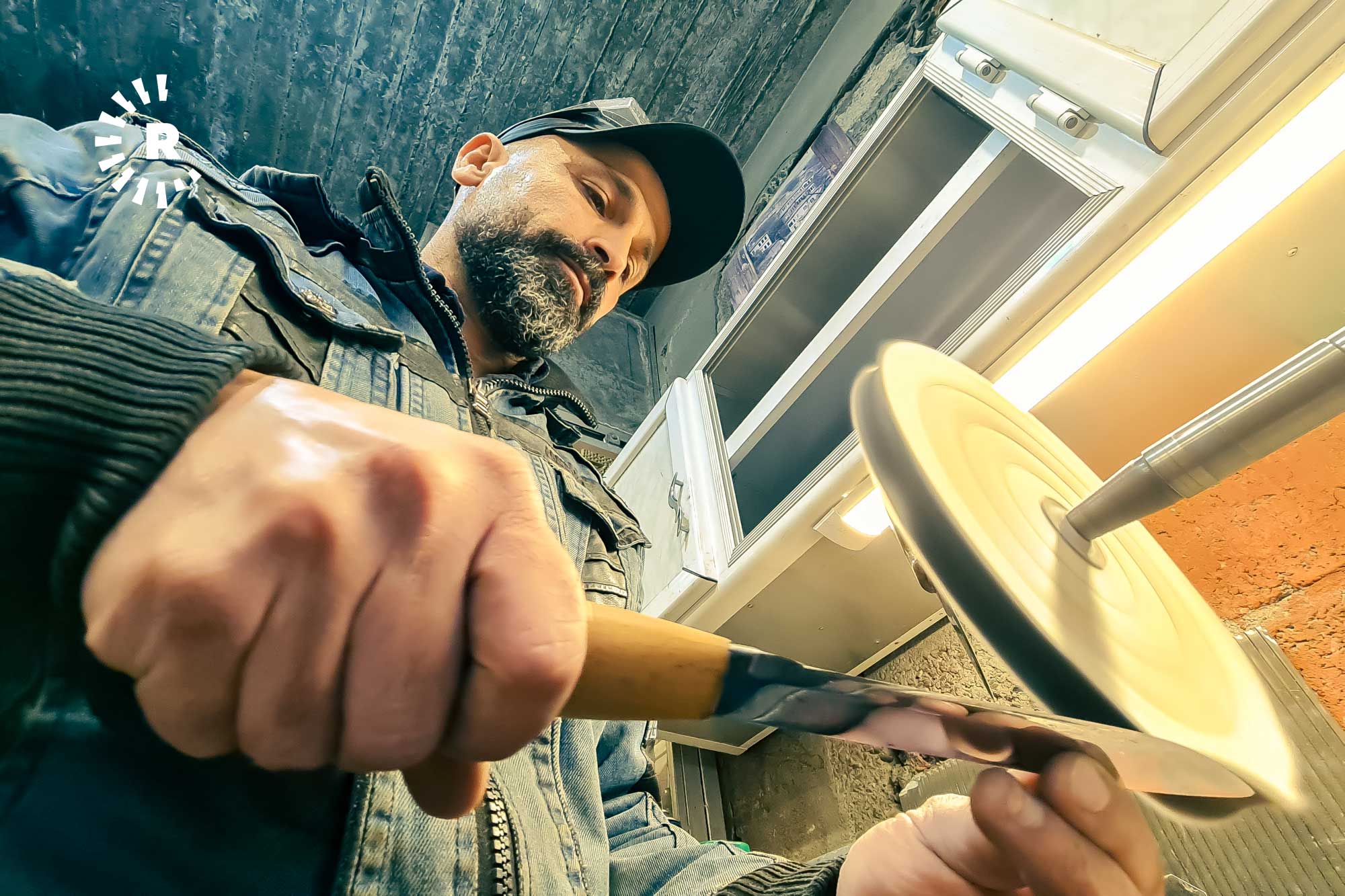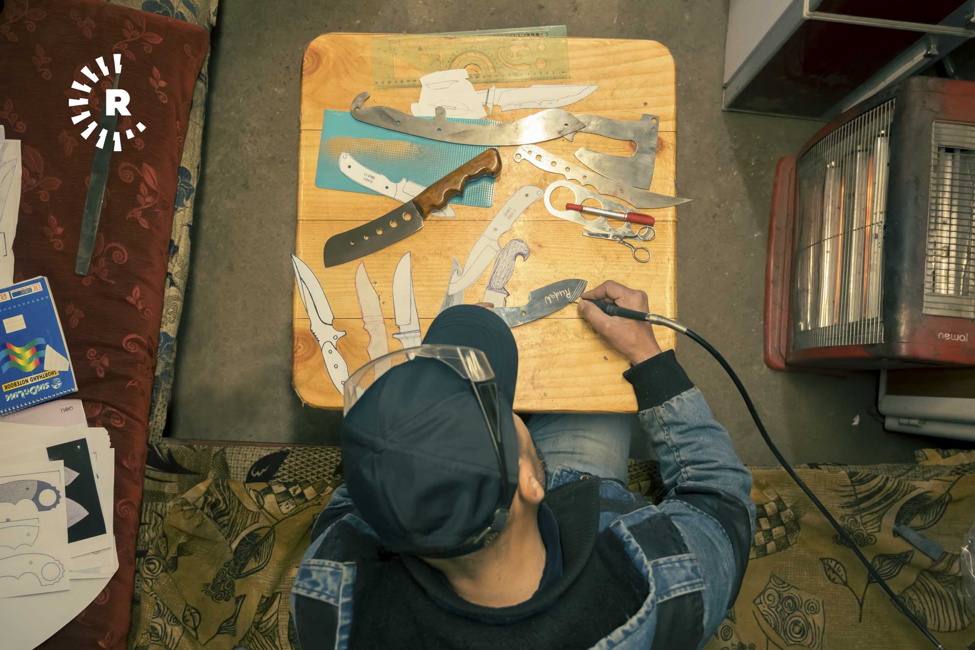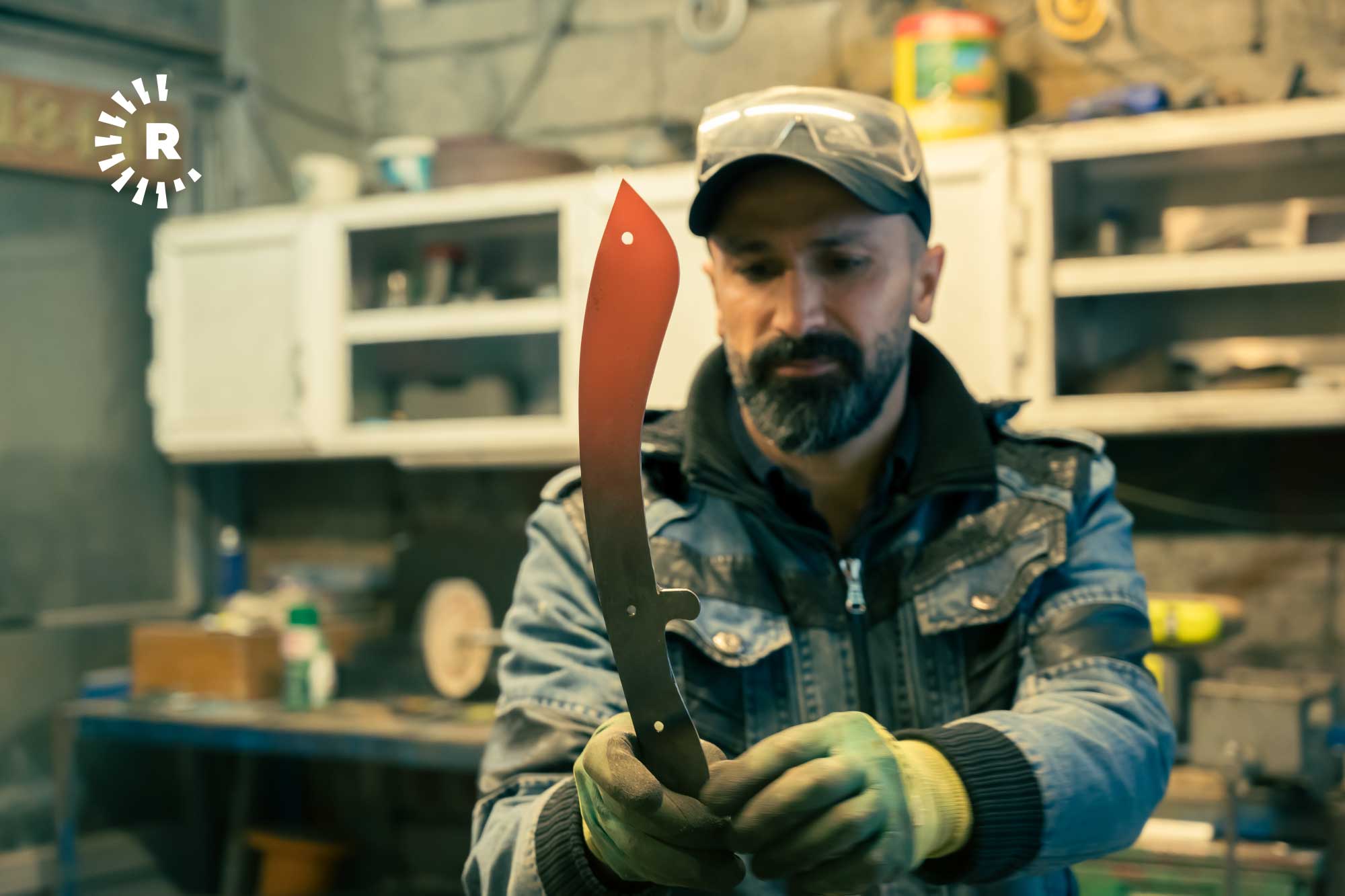38 yaşındaki Şivan Haddad, 22 yıldır demir atölyesinde çalışıyor. Üç yıl önce ise, eski demirlerden bıçaklar üretmeye başlamış.