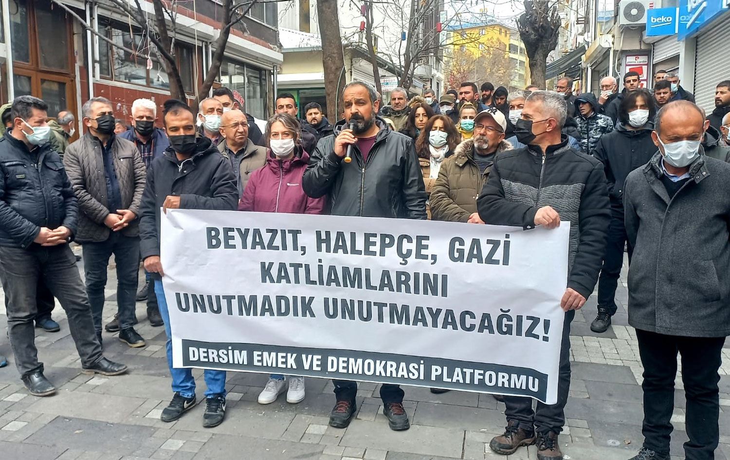 Dersim (Rûdaw) – Dersim Emek Ve Demokrasi güçleri Gazi Mahallesi, Beyazıt ve Halepçe katliamlarını lanetledi, hayatını kaybedenleri andı ve katliamcı zihniyetlere karşı birlikte mücadele çağrısı yaptı.