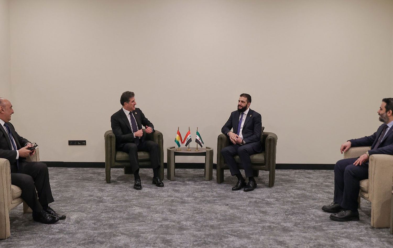 Erbil (Rûdaw) – Kürdistan Bölgesi Başkanı Neçirvan Barzani, Suriye geçiş hükümeti Cumhurbaşkanı Ahmed Şara ile görüşmesinde, Suriye'deki Kürt halkının haklarının güvence altına alınmasının, bölgesel istikrar ve güvenliğin korunmasına katkı sağlayacağını vurguladı.