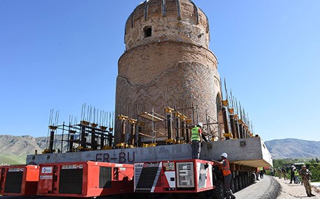 650 yıllık yapı 150 tekeri bulunan özel bir araç ile 52 mühendisin gözetiminde yeri değiştirildi.