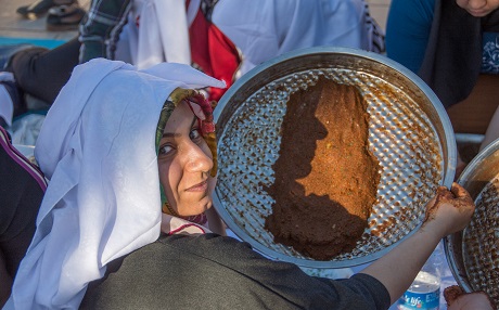 Urfa Turizmi Geliştirme Derneğince "Legeni al gel" sloganıyla organize edilen program kapsamında, Müze Kompleksi'nin bahçesinde biraraya gelen 400 kadın, yöresel müzikler eşliğinde aynı anda çiğ köfte yoğurdu.