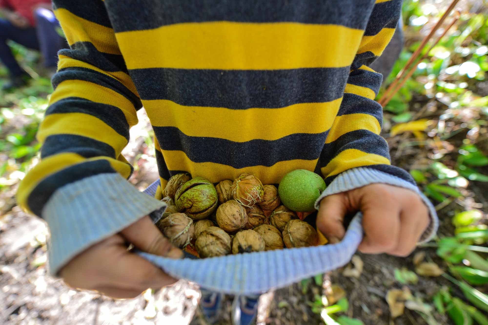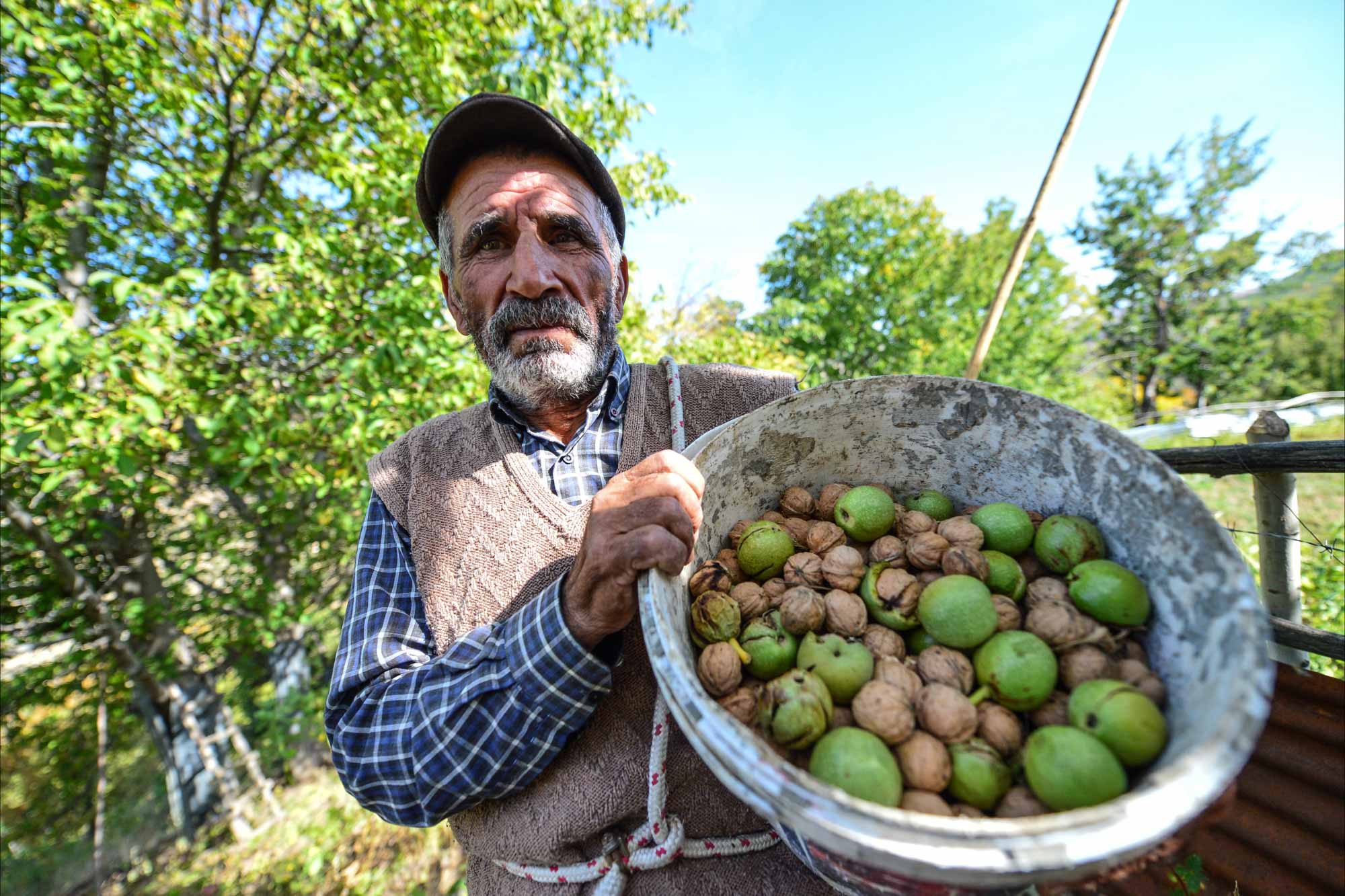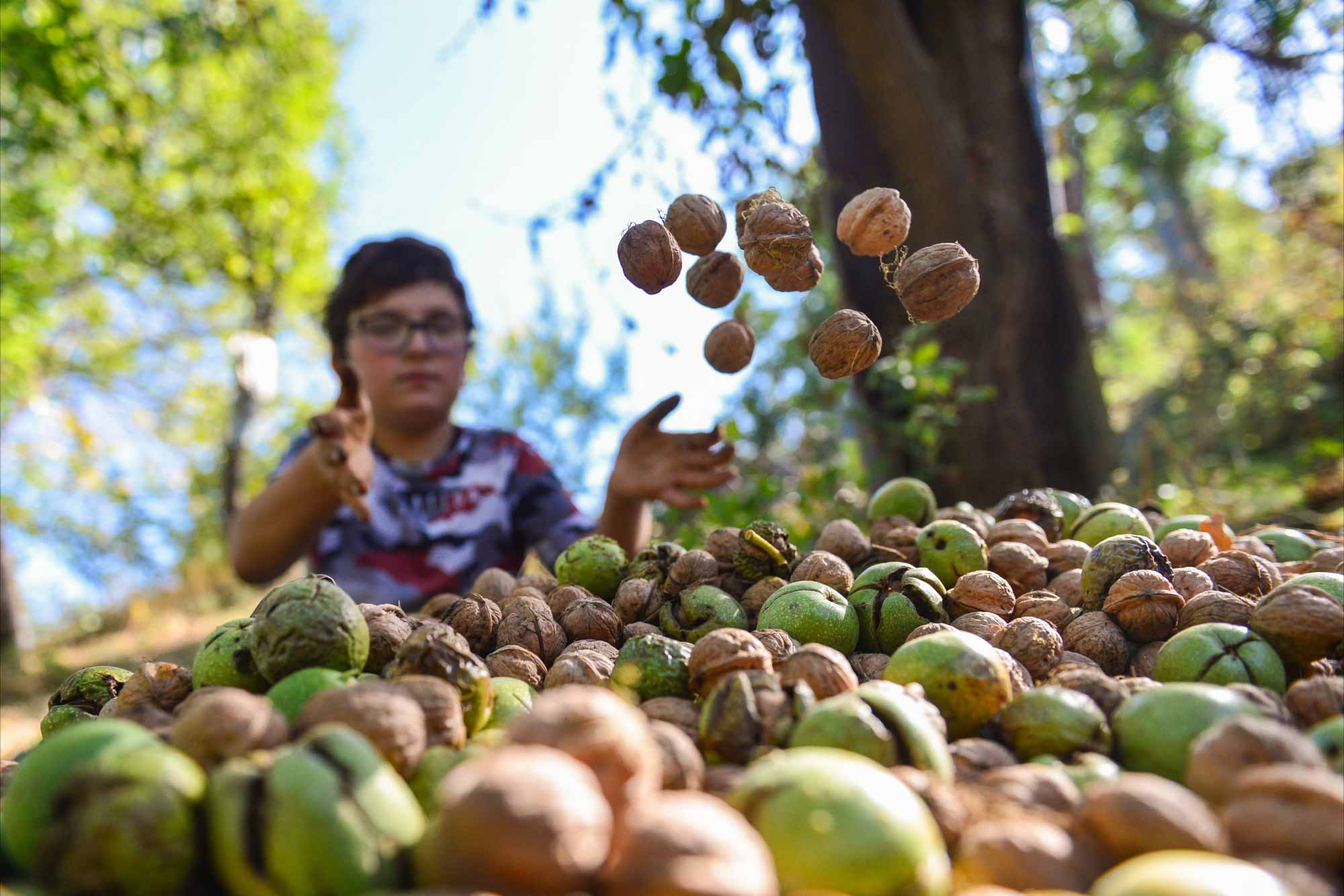 Sonbahar mevsiminde uzun sırıklar yardımıyla silkelenen cevizler, toplanıp kabuklarından ayıklandıktan sonra kurumaları için güneşe bırakılıyor.
