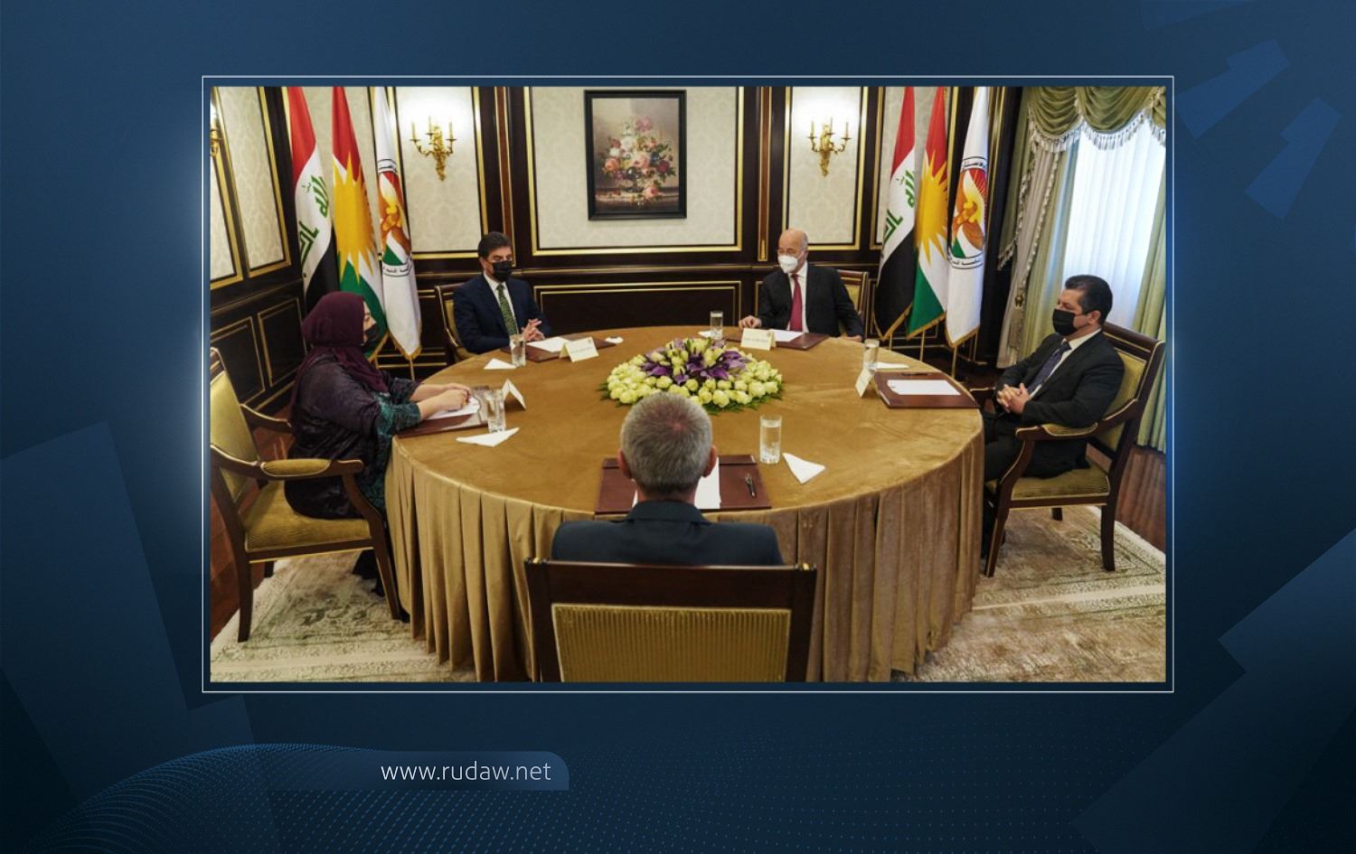 Kürdistan Bölgesi Başkanı Neçirvan Barzani, Başbakan Mesrur Barzani, Başkan Yardımcısı Mustafa Seyid Kadir ve Kürdistan Parlamentosu Başkanı Rewaz Faye”, Irak Cumhurbaşkanı Berhem Salih ile Erbil'deki Başkanlık konutunda bir araya geldi.