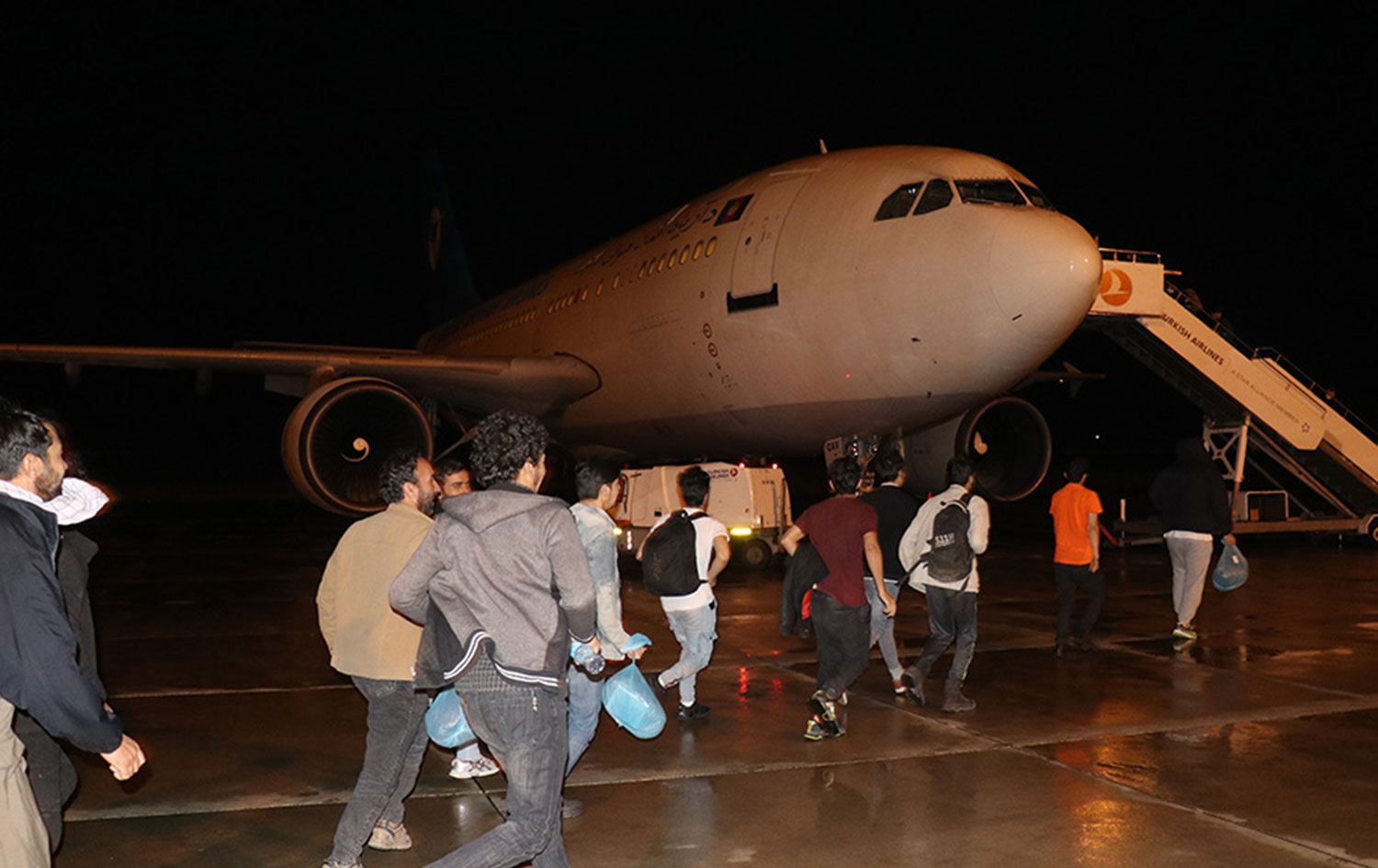 Düzensiz göçmenlerin bulunduğu uçak, daha sonra Afganistan'a hareket etti.