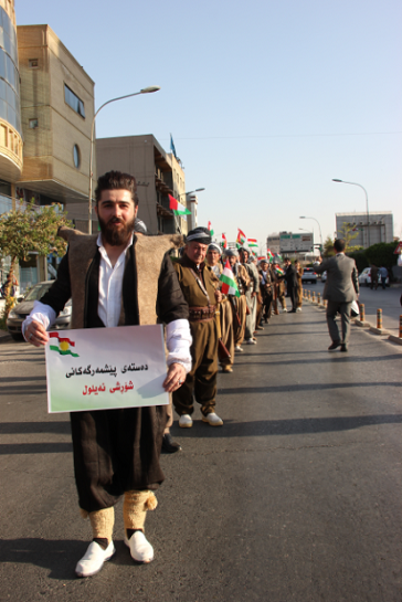 Kürdistan bayrakları taşıyan yürüyüşçülere vatandaşlar yoğun ilgi gösterdi. Yürüyüşçüler, tarihi Erbil Kalesi'nin önünden geçerek Şanedar Parkı'na ulaştı. Parkta toplanan kalablık yürüyüşçüleri karşıladı.