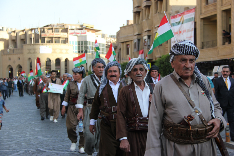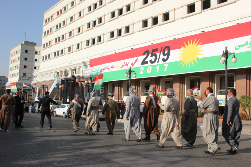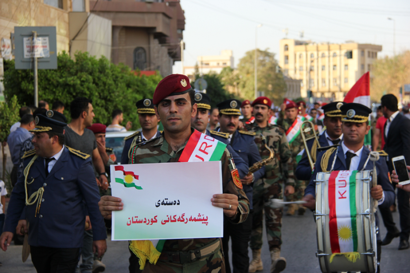 Erbil (Rûdaw) - Başkent Erbil'de, bağımsızlık referandumuna destek amacıyla Eylül Devrimi peşmergeleri, etnik ve dini azınlıkların temsilcileri, merasim bölüğü ve bando takımı yürüyüş düzenledi.