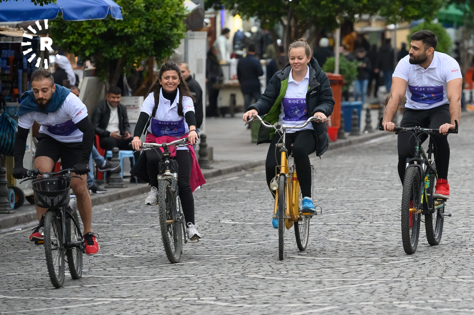 7 kilometre pedal çeviren sporcuların arasında çok sayıda kadın da bulunuyor.