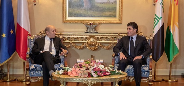 Erbil (Rûdaw) - Fransa Dışişleri Bakanı Jean Yves Le Drian, Başbakan Neçirvan Barzani’ye, Kürdistan Bölgesi’ne ülkesinin desteğini yineledi.