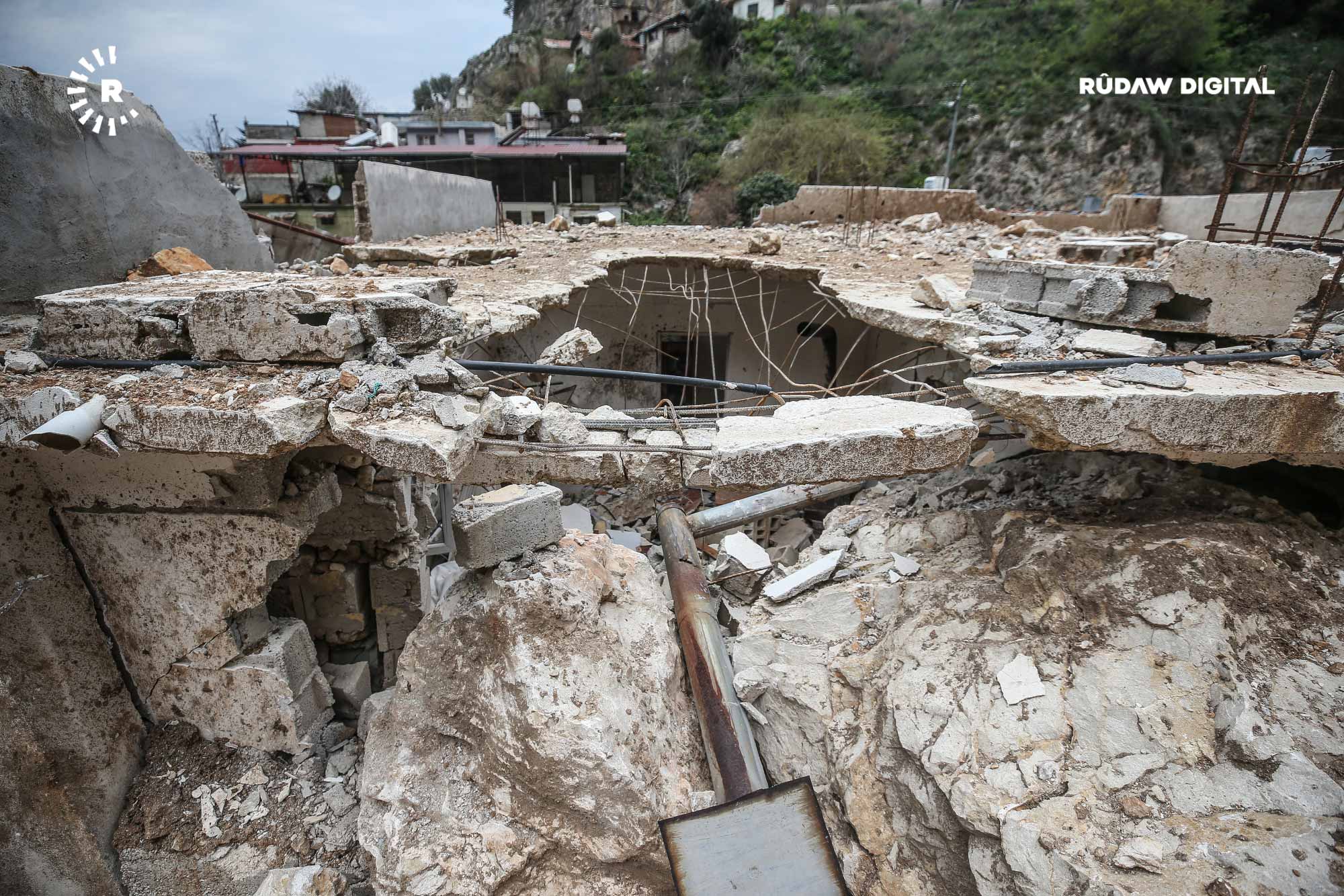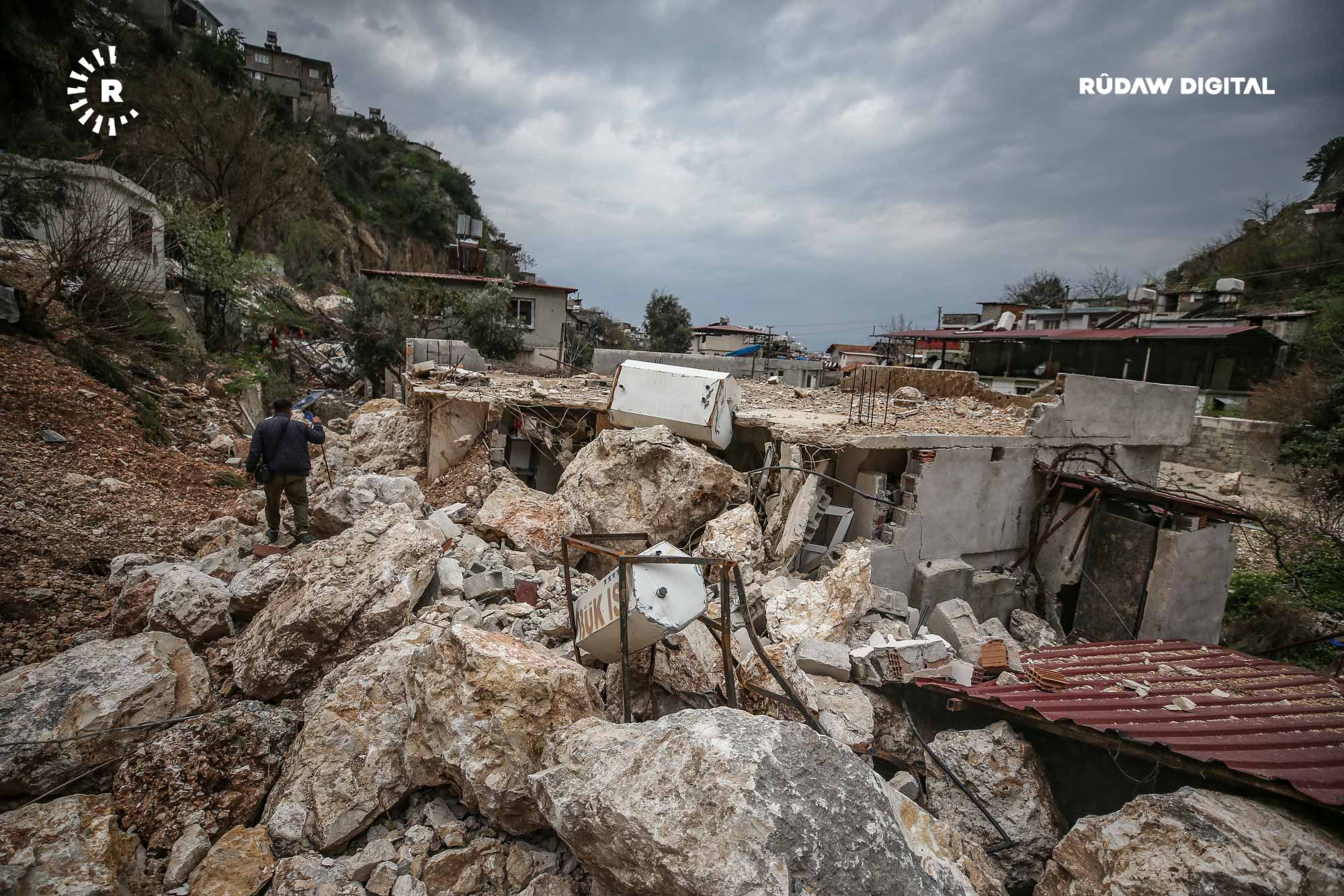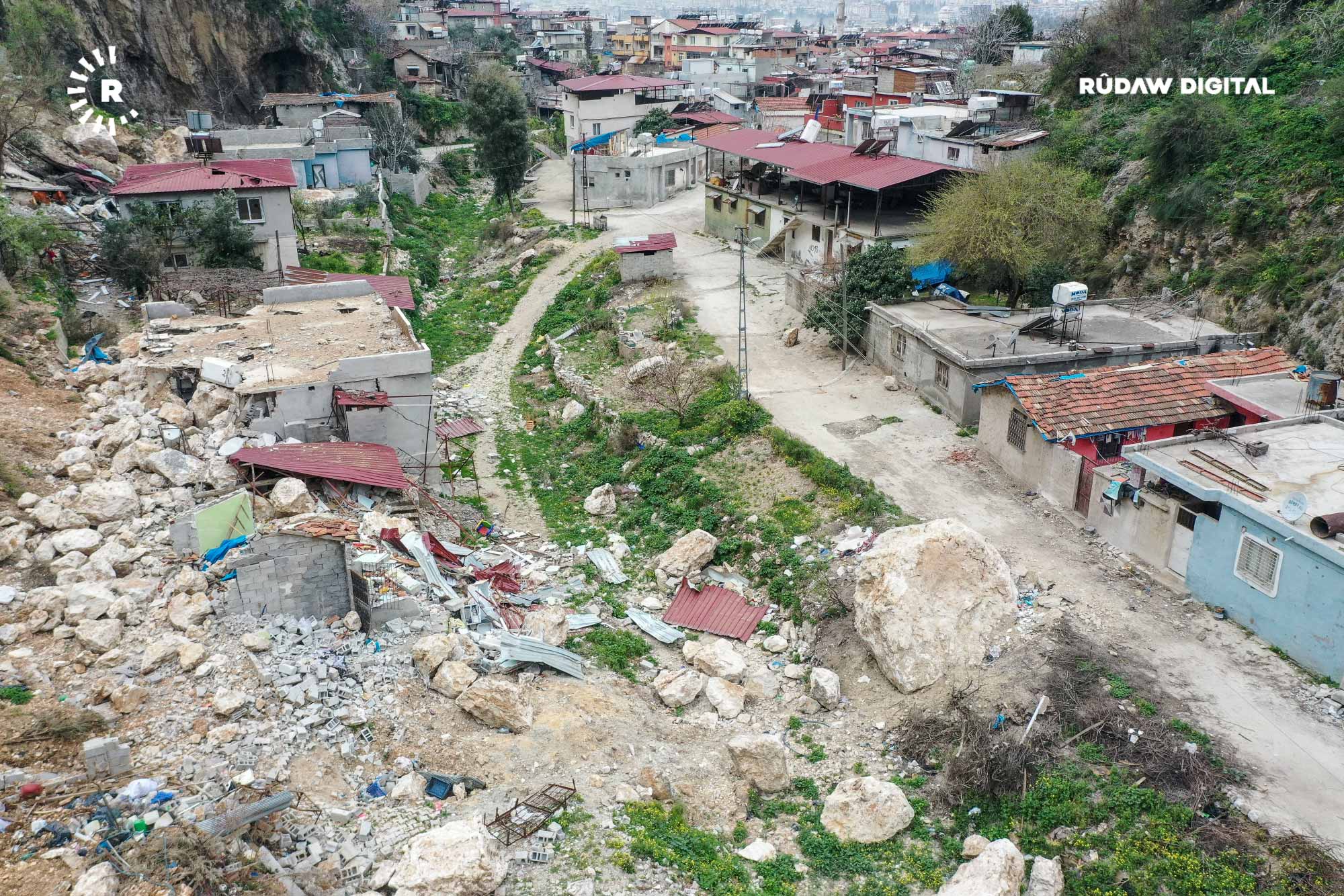 AA - Antakya ilçesinde depremin etkisiyle Habib-i Neccar Dağı'ndan kopan kayalar, dağın eteğinde kurulu mahalledeki evlerin bazılarını yerle bir ederken, birçoğunda hasar oluşturdu.