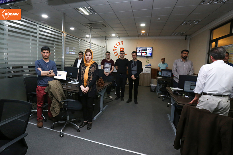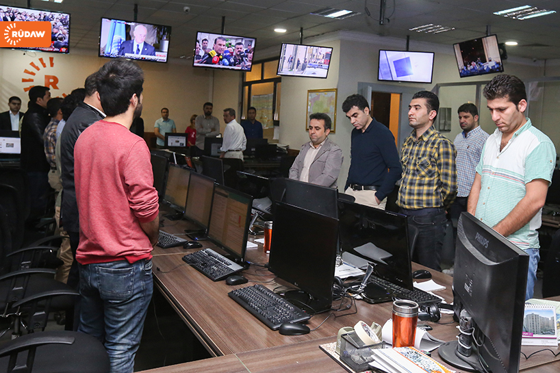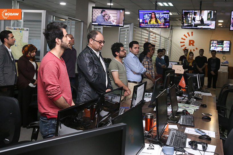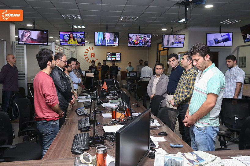 Rûdaw Medya Grubu’nun haber merkezinde de saat 09.00’da 8 dakika saygı duruşu yapıldı.