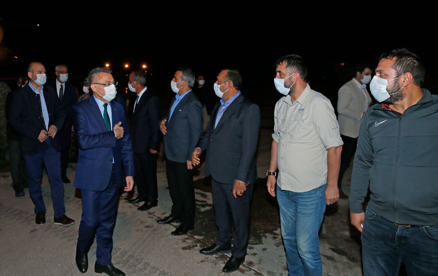 Cumhurbaşkanı Recep Tayyip Erdoğan'ın talimatıyla Bingöl'e giden Fuat Oktay’ı Bingöl Havalimanı'nda Vali Yardımcısı Fatih Kaya, Belediye Başkanı Erdal Arıkan ve Bingöl Üniversitesi Rektörü Prof. Dr. İbrahim Çapak ile bazı yetkililer karşıladı.