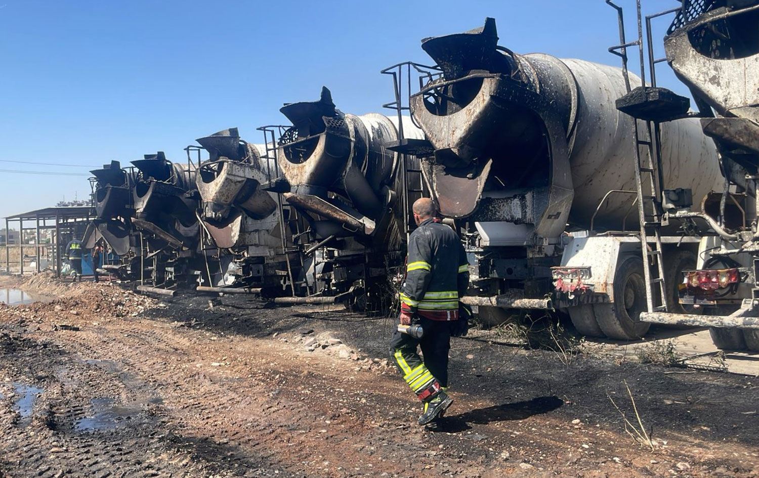 Rûdaw’a ulaşan yangın görüntülerinde çok sayıda beton mikser aracının yandığı görülüyor.