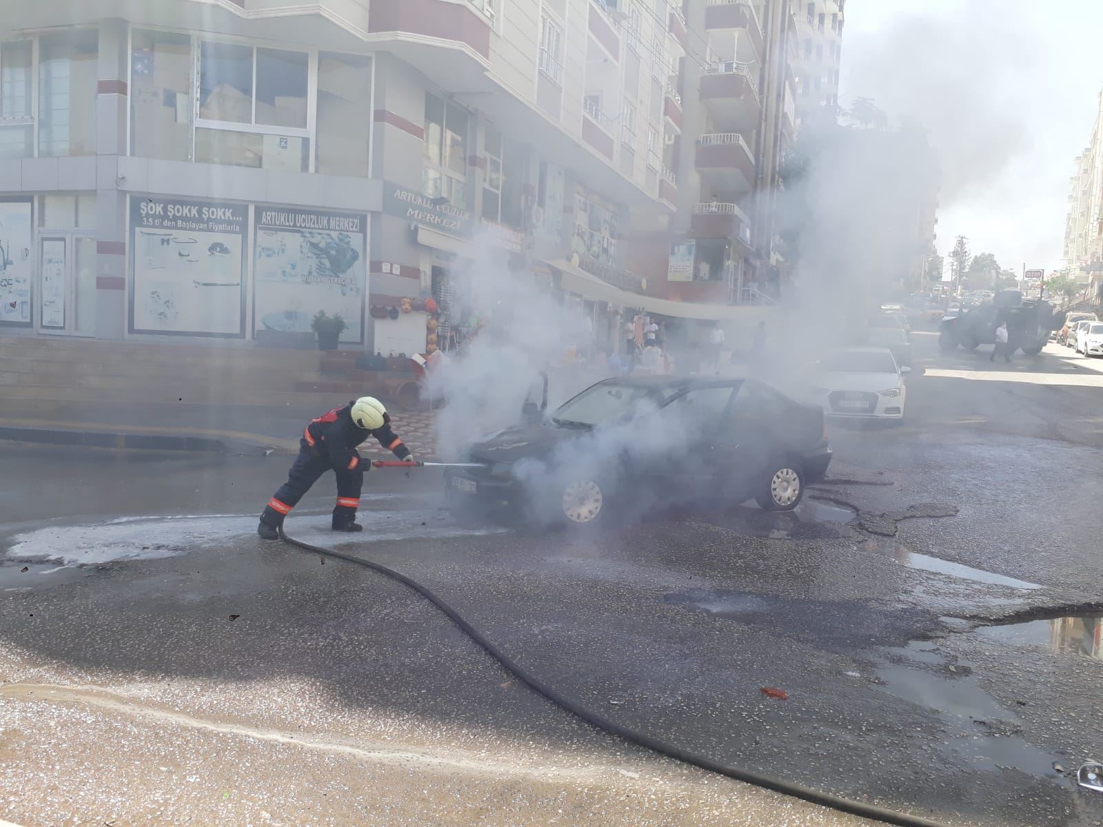 Haber Merkezi - Mardin'in merkez Artuklu ilçesinde seyir halindeki otomobil alev aldı.