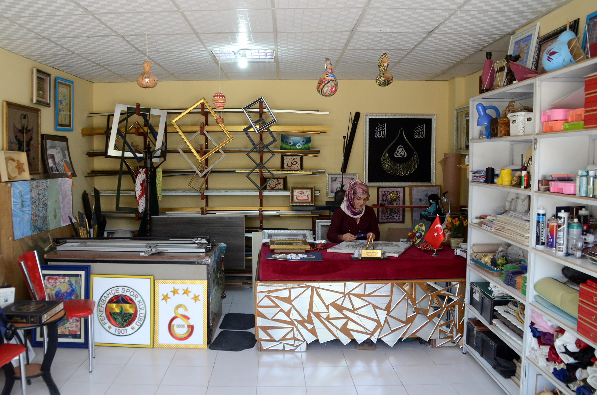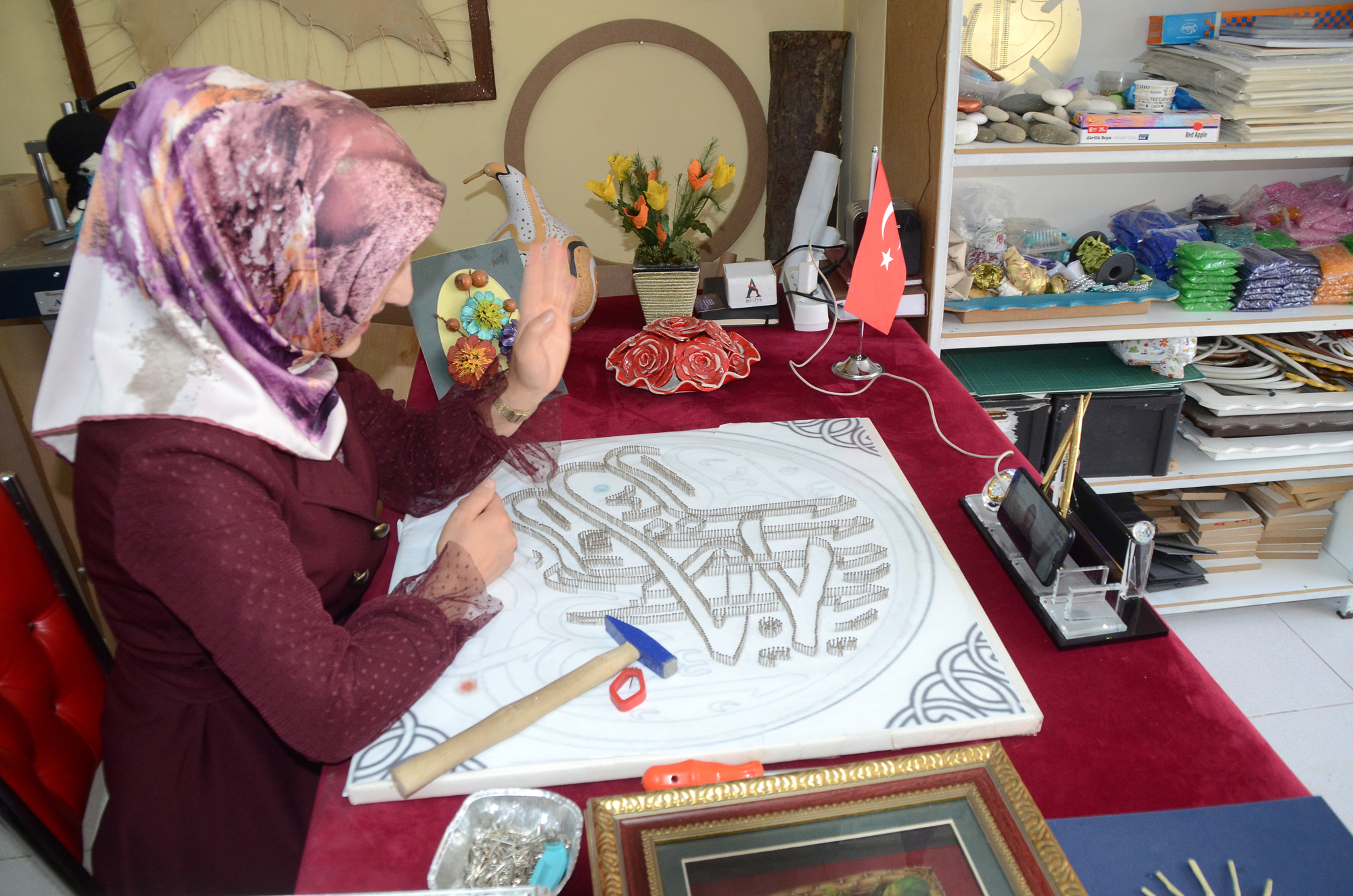 Online eğitimlere katılarak yeni bilgiler öğrenen kursiyerler, bu sayede birbirinden güzel eserler yaparak evde kalmanın olumsuz etkilerinden kurtuldu.