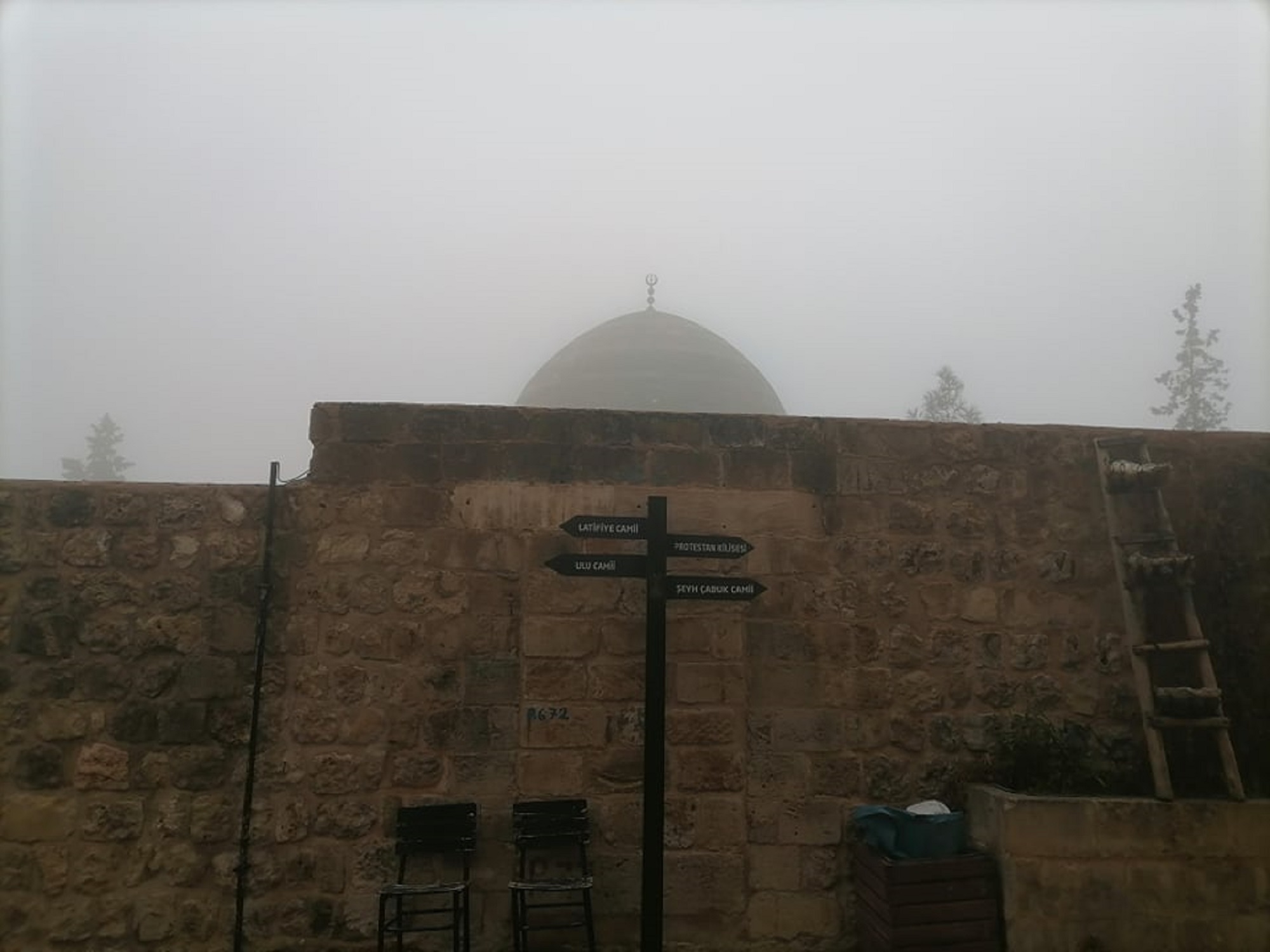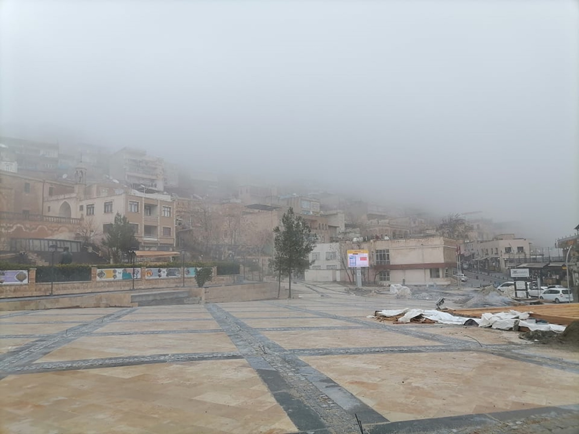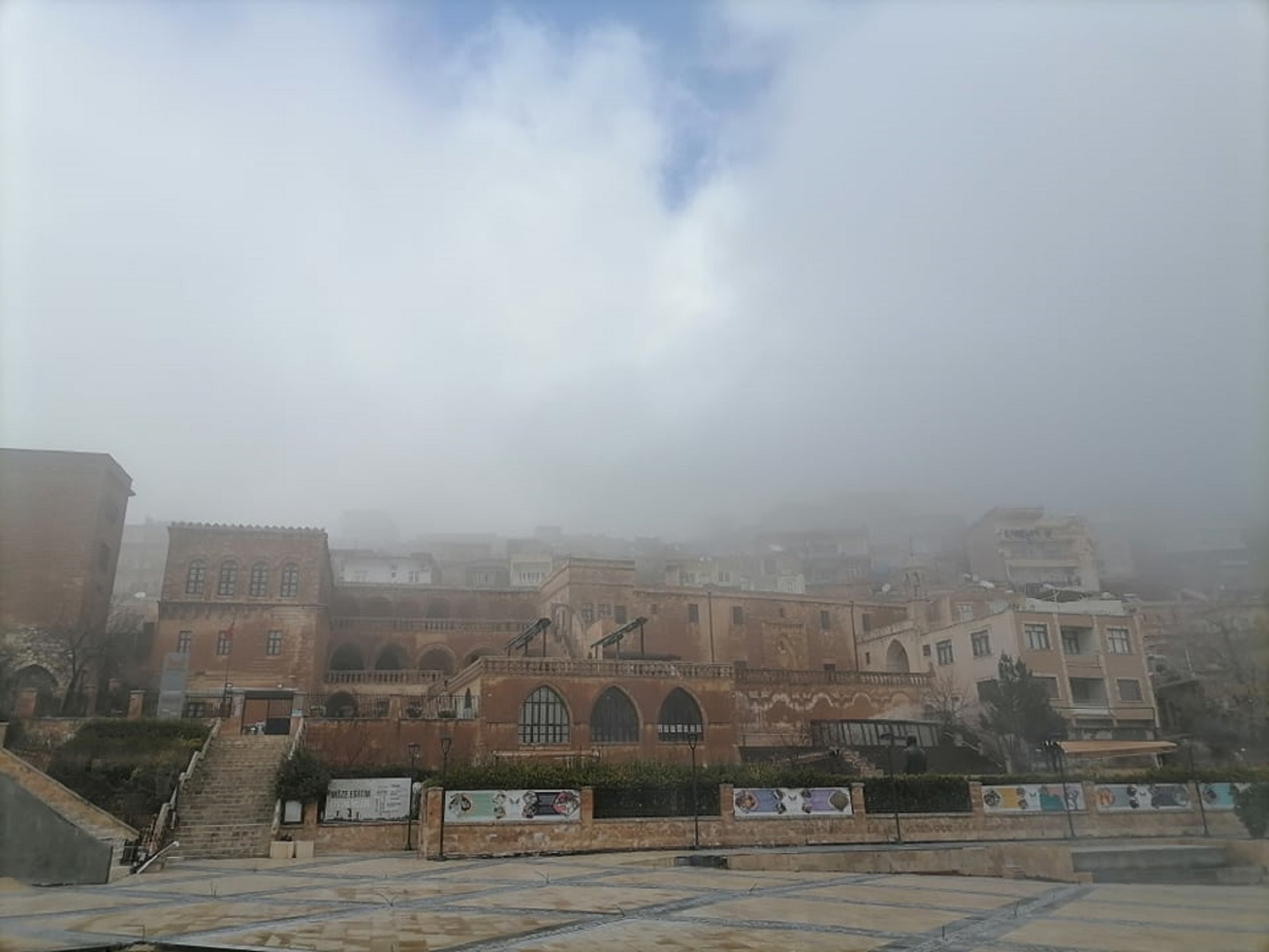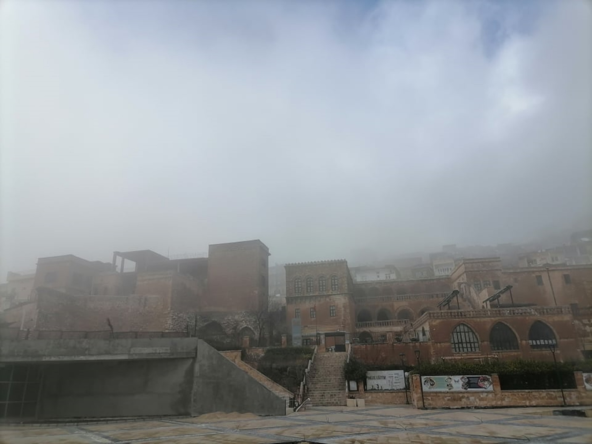 Tarihi Mardin yerleşiminin olduğu bölge de tamamen sis altında kalırken, tarihi manzara görünmez hale geldi.