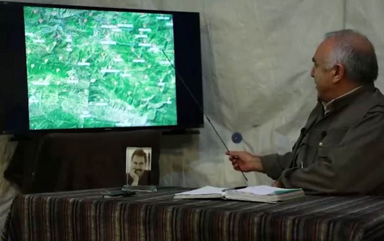 Karayılan, harita üzerinden TSK’nın yerleştiği bölgeleri kırmızı, kendi güçlerinin bulunduğu bölgeleri ise sarı olarak işaretleyen harita üzerinden anlatım yaptı.