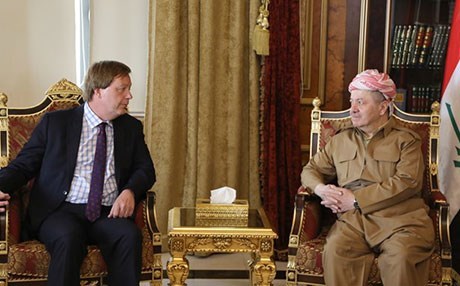 Erbil (Rûdaw) - Başkan Mesud Barzani, İngiltere'nin Bağdat Büyükelçisi Frank Baker ile Kürdistan’ın bağımsızlık referandumunu görüştü.