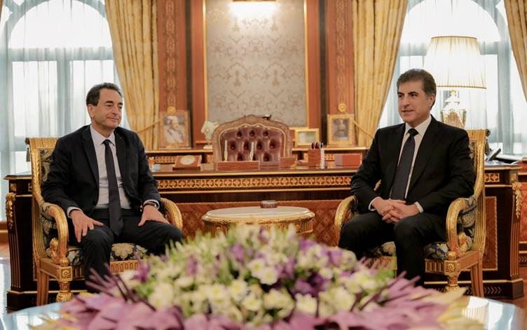 Başkan Neçirvan Barzani Erbil'de Fransa'nın Bağdat Büyükelçisi Eric Chevalier'i kabul etti.