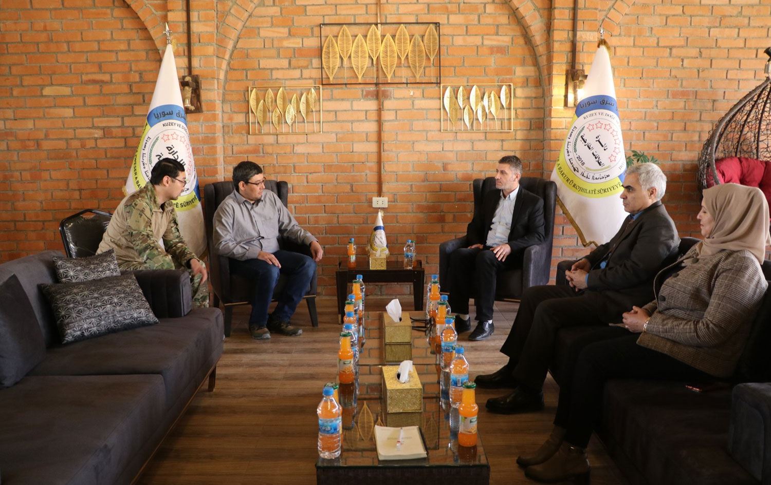 Bilgilendirmeye göre heyeti, Rojava Dış İlişkiler Dairesi Eş Başkanı Yardımcısı Robel Beho, Dış İlişkiler Dairesi Yürütme Komitesi Üyesi Halid İbrahim, YPJ Ofisi Üyesi Lana Hisen ve Kadın Komite Yardımcısı Huweyda Muhammed Selim karşıladı.