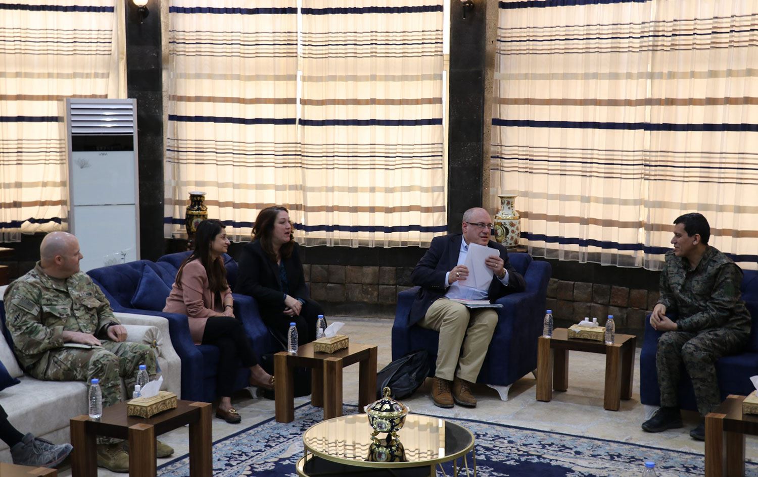 Demokratik Suriye Güçleri (DSG) Genel Komutanı Mazlum Kobani ile ABD Dışişleri Bakan Yardımcısı Ethan Goldrich, ABD Dışişleri Bakanlığı’nın Irak İşlerinden Sorumlu Yardımcısı Jennifer Gavito, Birleşmiş Milletler (BM) Irak ve Suriye Dosyası Direktörü Zahra Bell ve ABD'nin Suriye Misyonu Başkan Yardımcısı Matthew Pearl’in yer aldığı heyet arasında bir görüşme gerçekleşti.