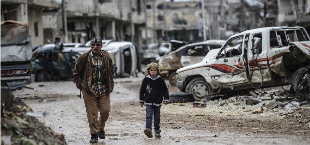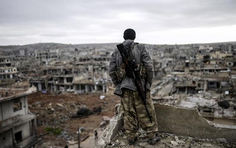 IŞİD ile Kürt güçleri arasında aylarca süren ve koalisyon güçlerinin yoğun bombardımanı sonucu kurtarılan Kobani, sokak çatışmalarından dolayı adeta bir yıkıntı.