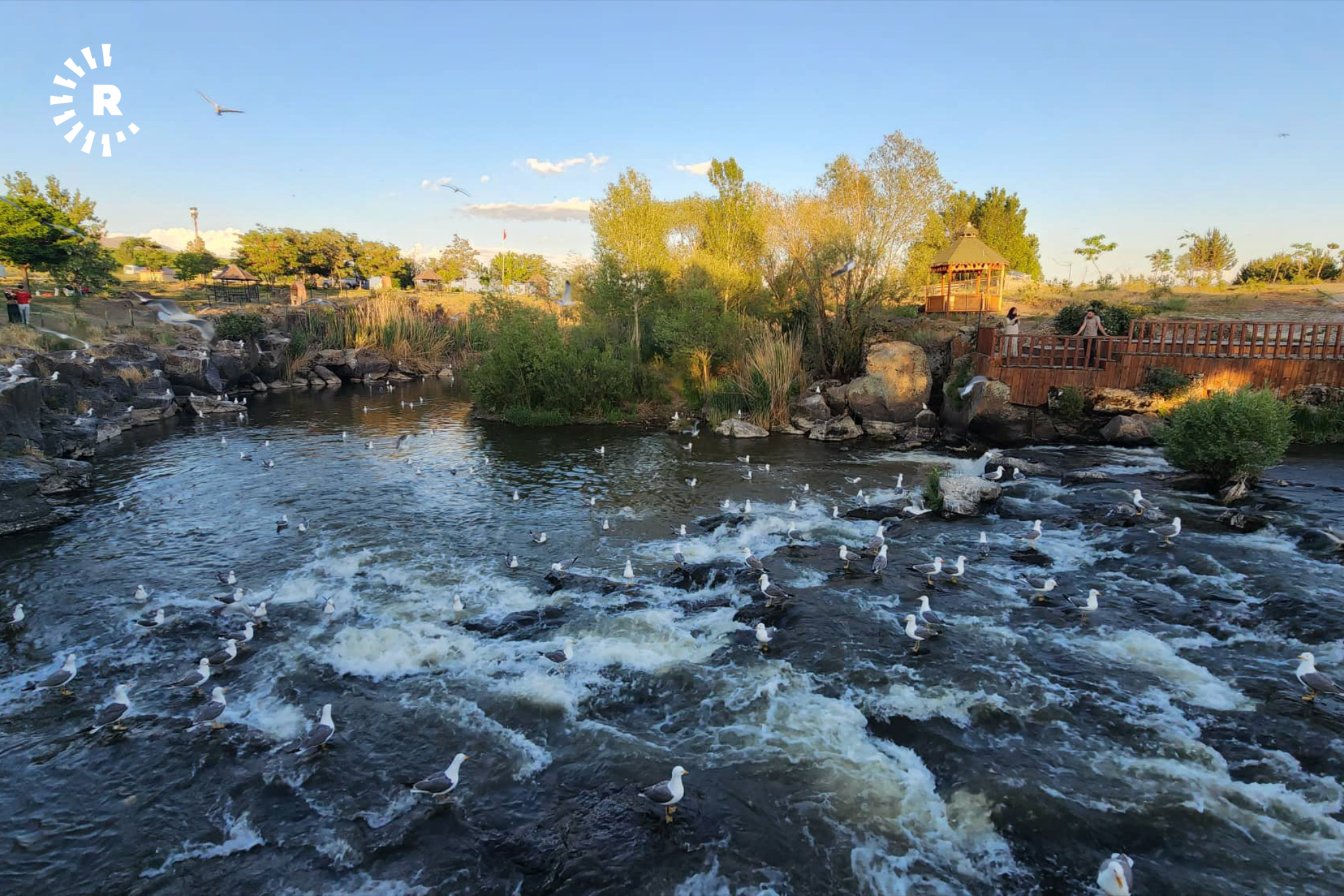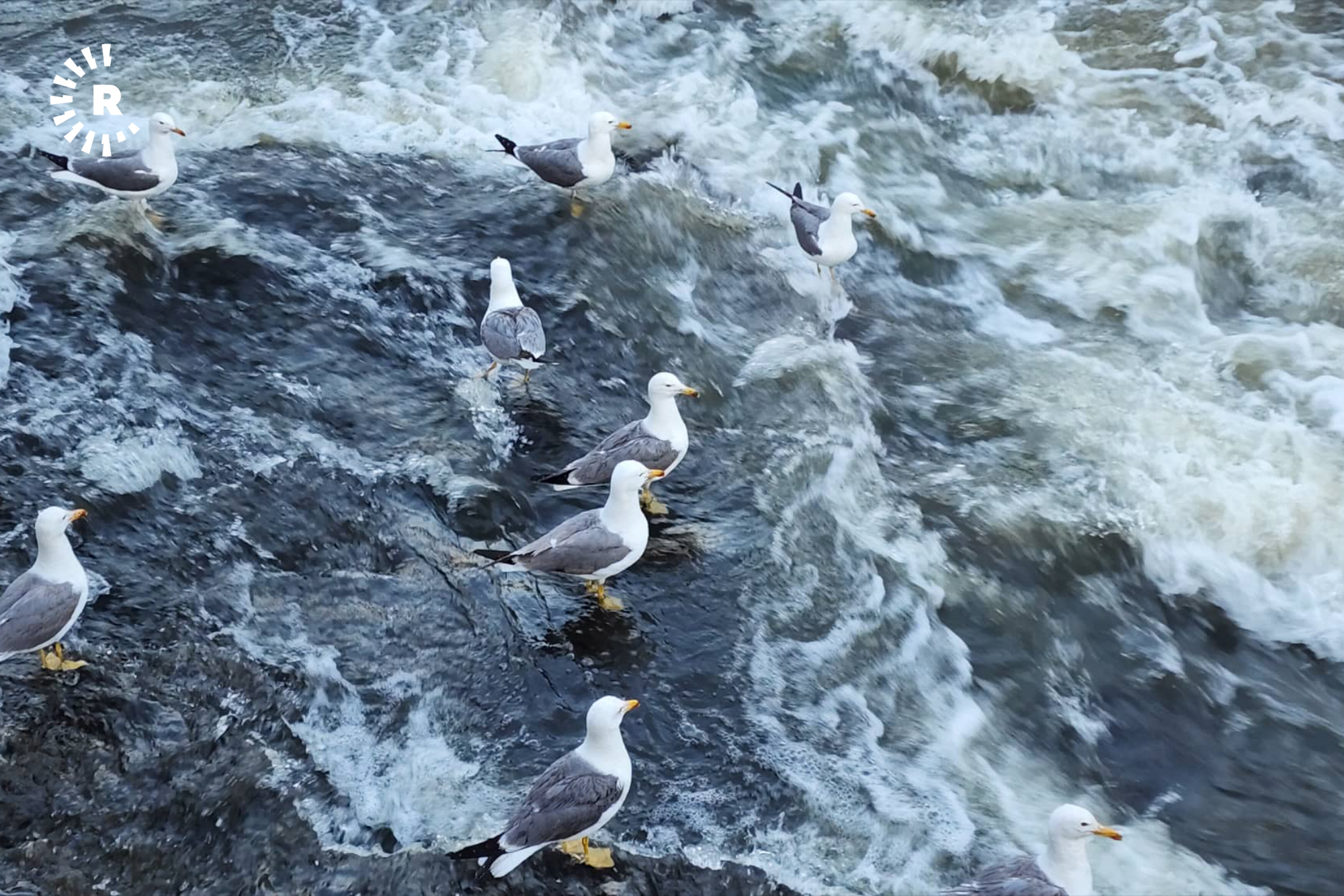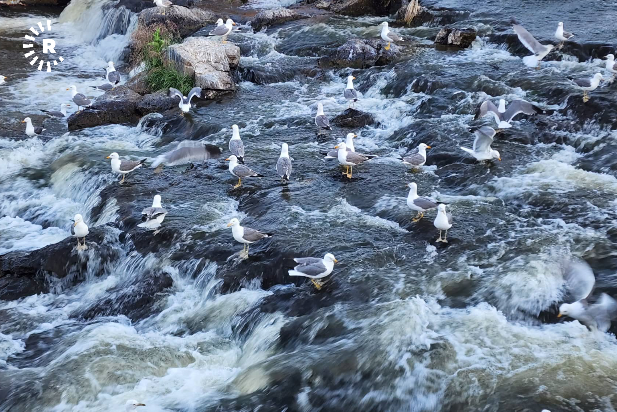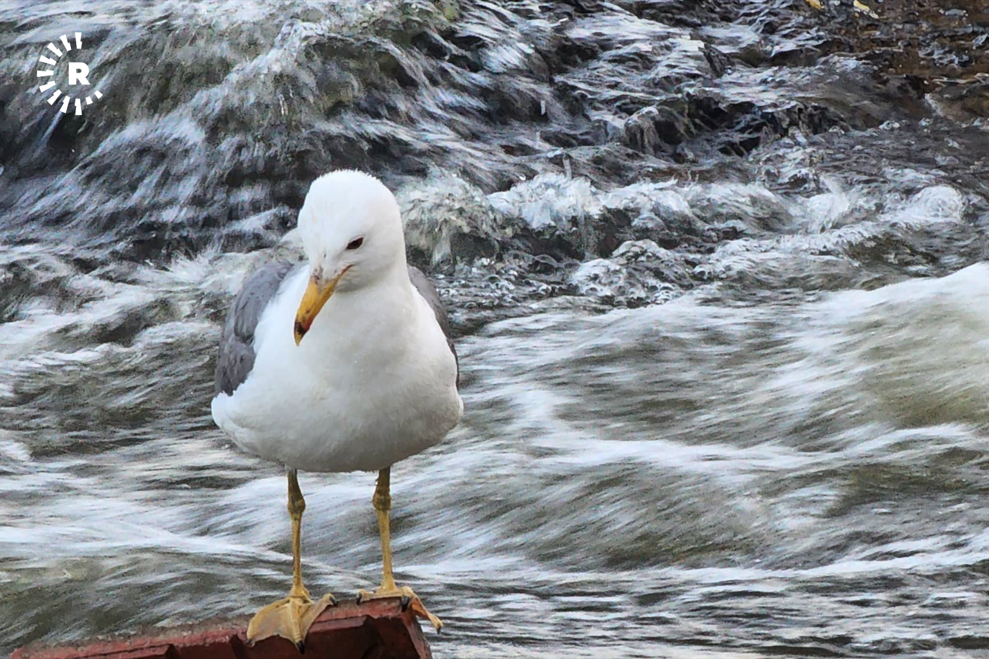 Erciş ilçesinde Çemê Payê’nin (Deli Çay) aktığı balık bendinde, martılar da göçü fırsat bilip balık avlıyor.
