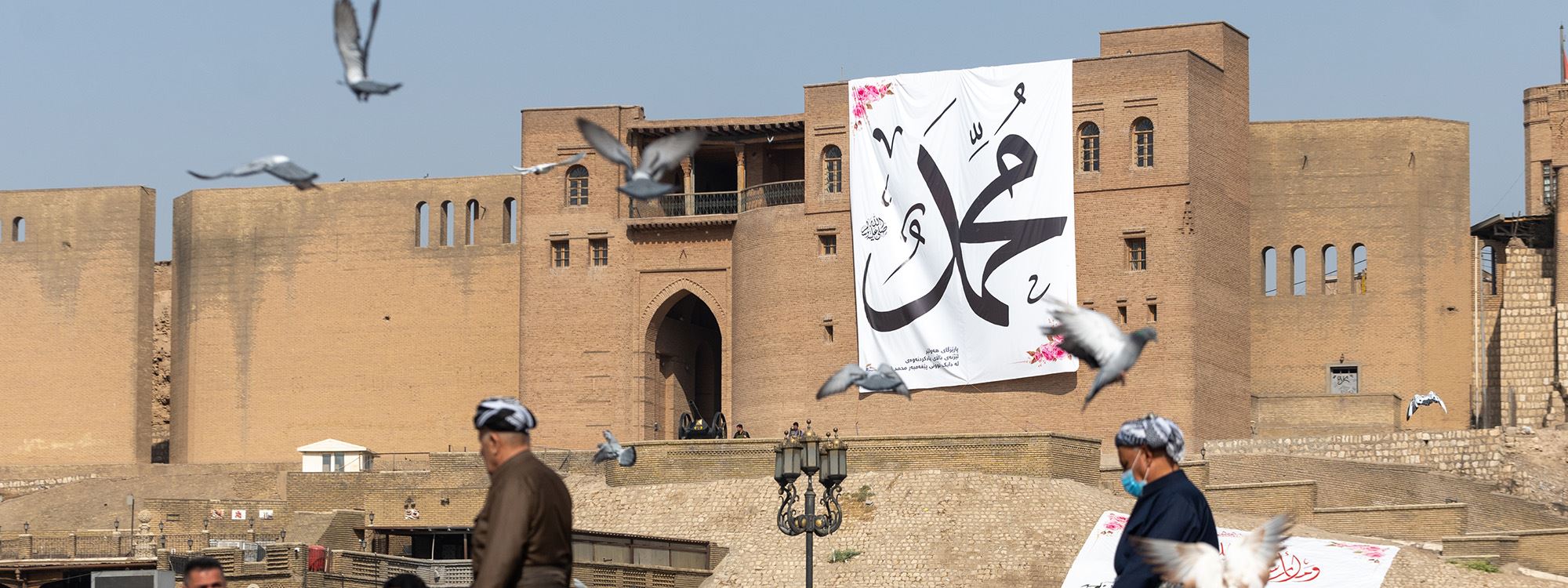 “Kutlu Doğum Haftası” olartak da adlandırılan Mevlit Kandili kutlamaları için başkent Erbil’dee bazı dükkanlar ve kamu yerlerine üzerinde ayetler yazan pankartlar asıldı. Tarihi Erbil Kalesi’ne de üzerinde “Muhammed (sav)” yazan dev bir pankart asıldı.