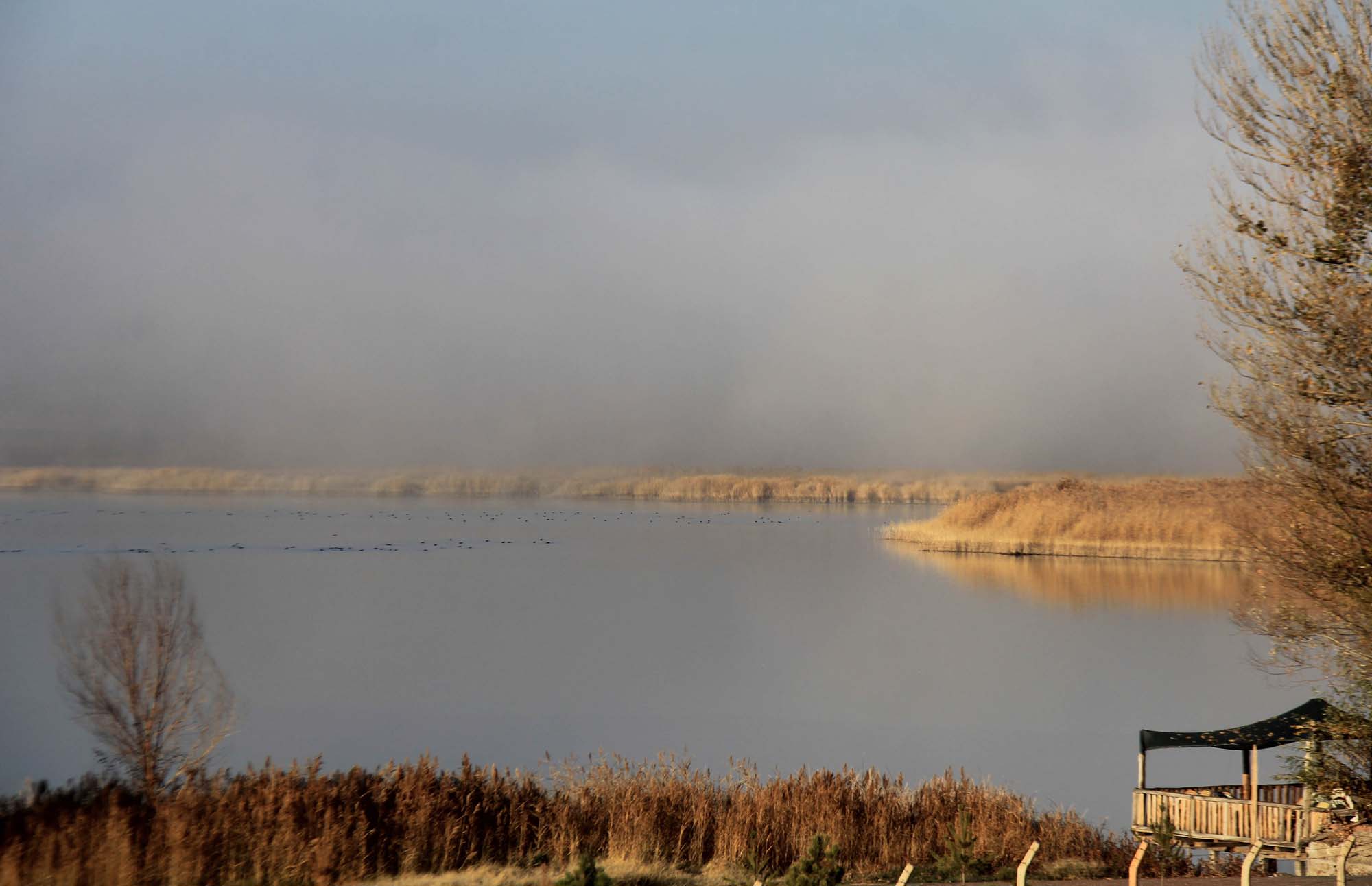 Bir çok kuş türüne ev sahipliği yapan Hafik Gölü, oluşan sisle birlikte güzel görüntüler oluşturdu.