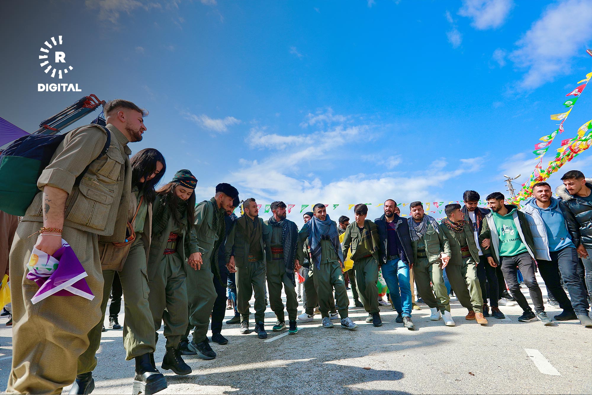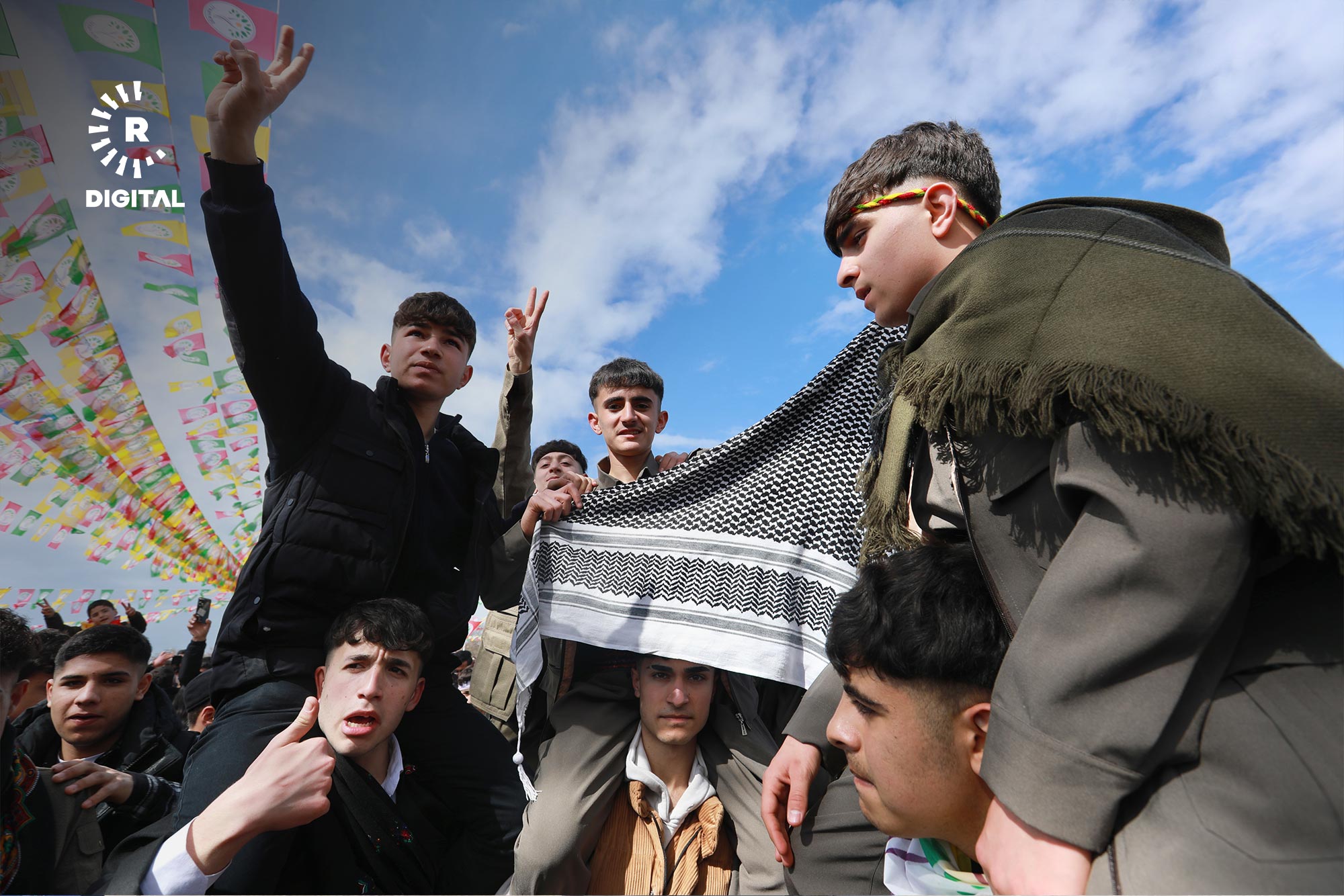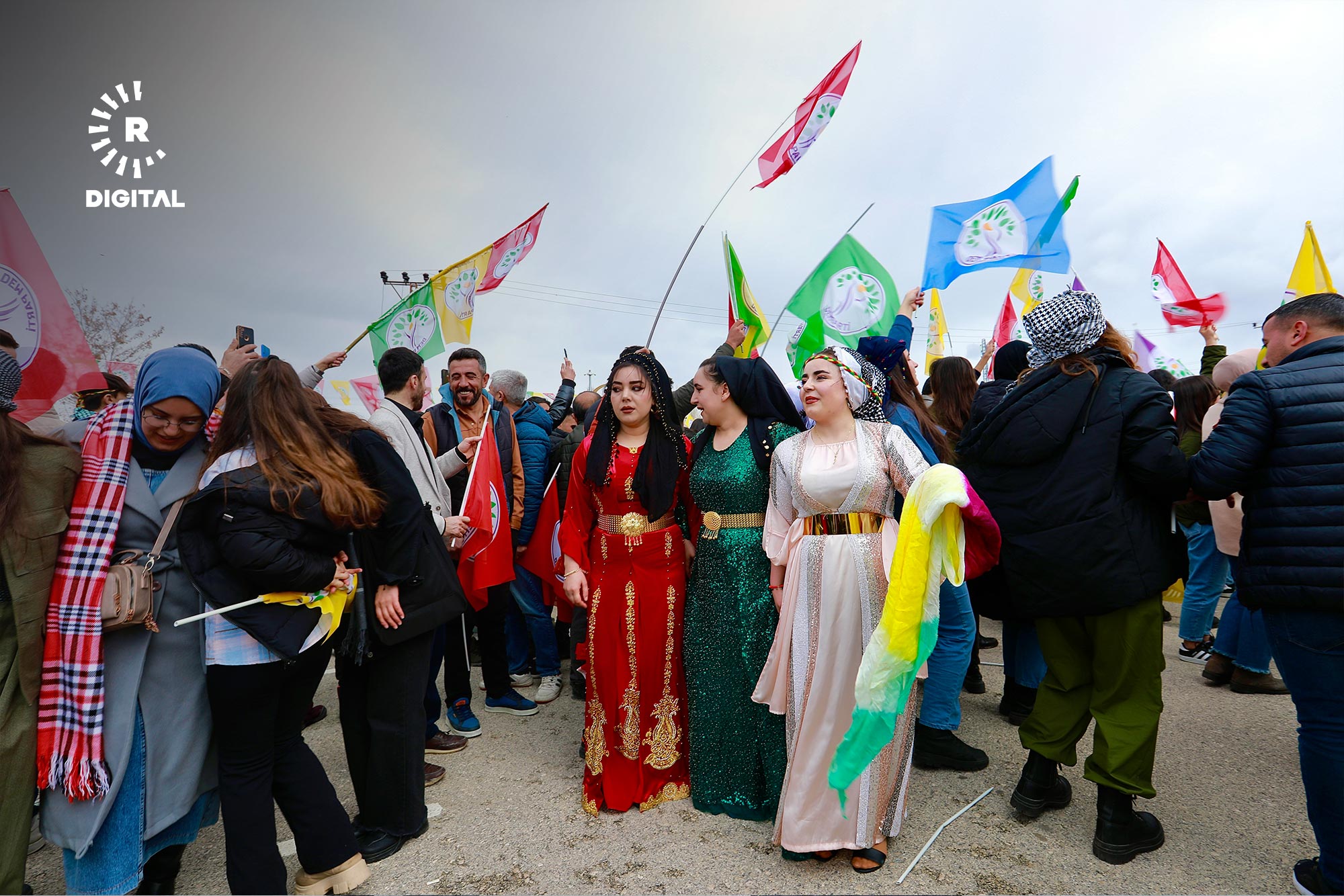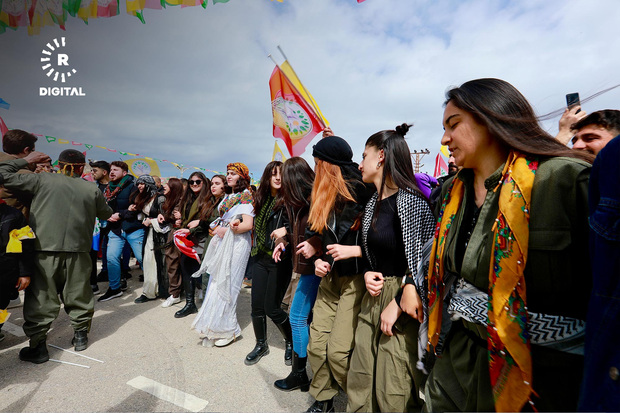 Renkli görüntülerin yaşandığı kutlamalar esnasında Kürtçe şarkılar eşliğinde binlerce kişi halay çekti.
